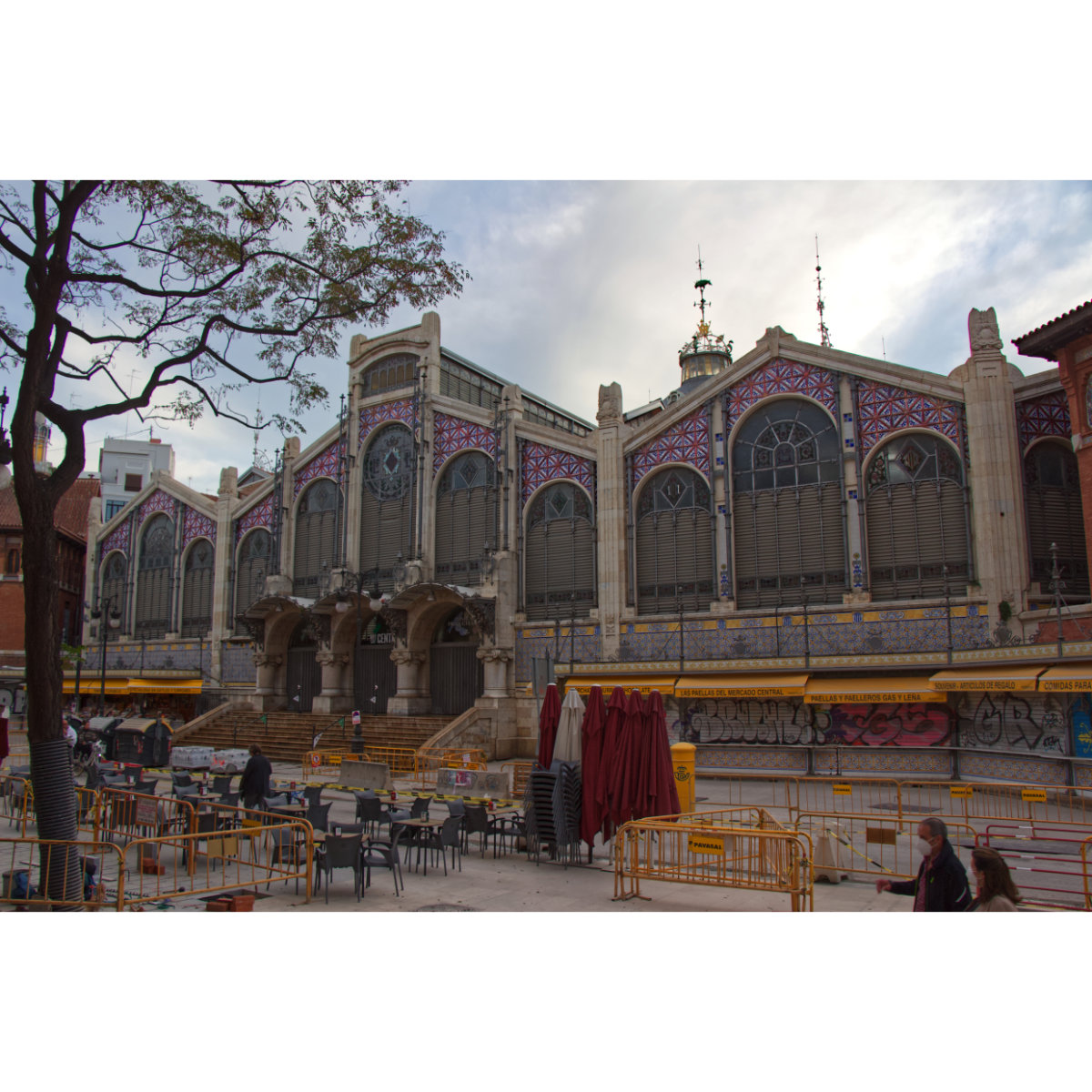 Weiter geht es durch das historische Fischerviertel El Cabanyal in die Altstadt: Museo Nacional de Ceramica, Kathedrale von Valencia mit Basilica Virgen de los Desamparados, Seidenbörse Lonja de la Seda, Iglesia de Santos Juanes, Mercato Central (leider wegen Bauarbeiten drinnen und draußen geschlossen). Das waren wieder reichlich Kilometer zu Fuß …