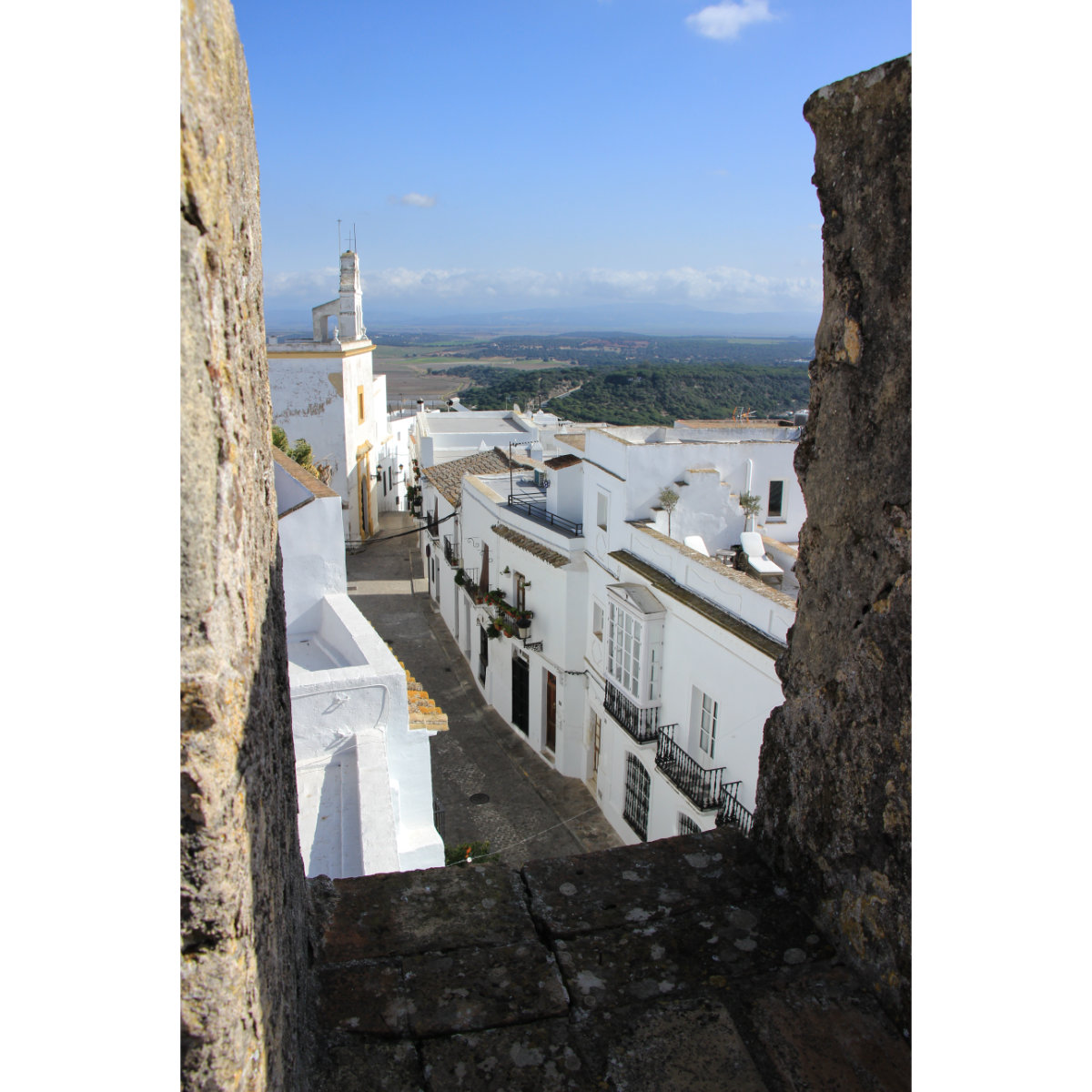 Vejer de La Frontera, eine typische, andalusische weiße Stadt liegt auf einem Hügel und ist von einer 2km langen Stadtmauer umgeben. Die Pflicht zur Vollverschleierung für christliche Frauen wurde erst 1939 abgeschafft!