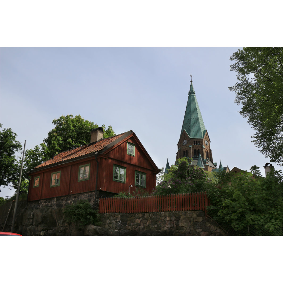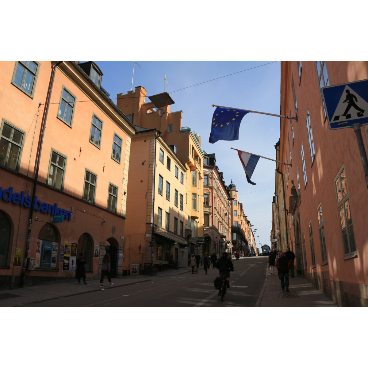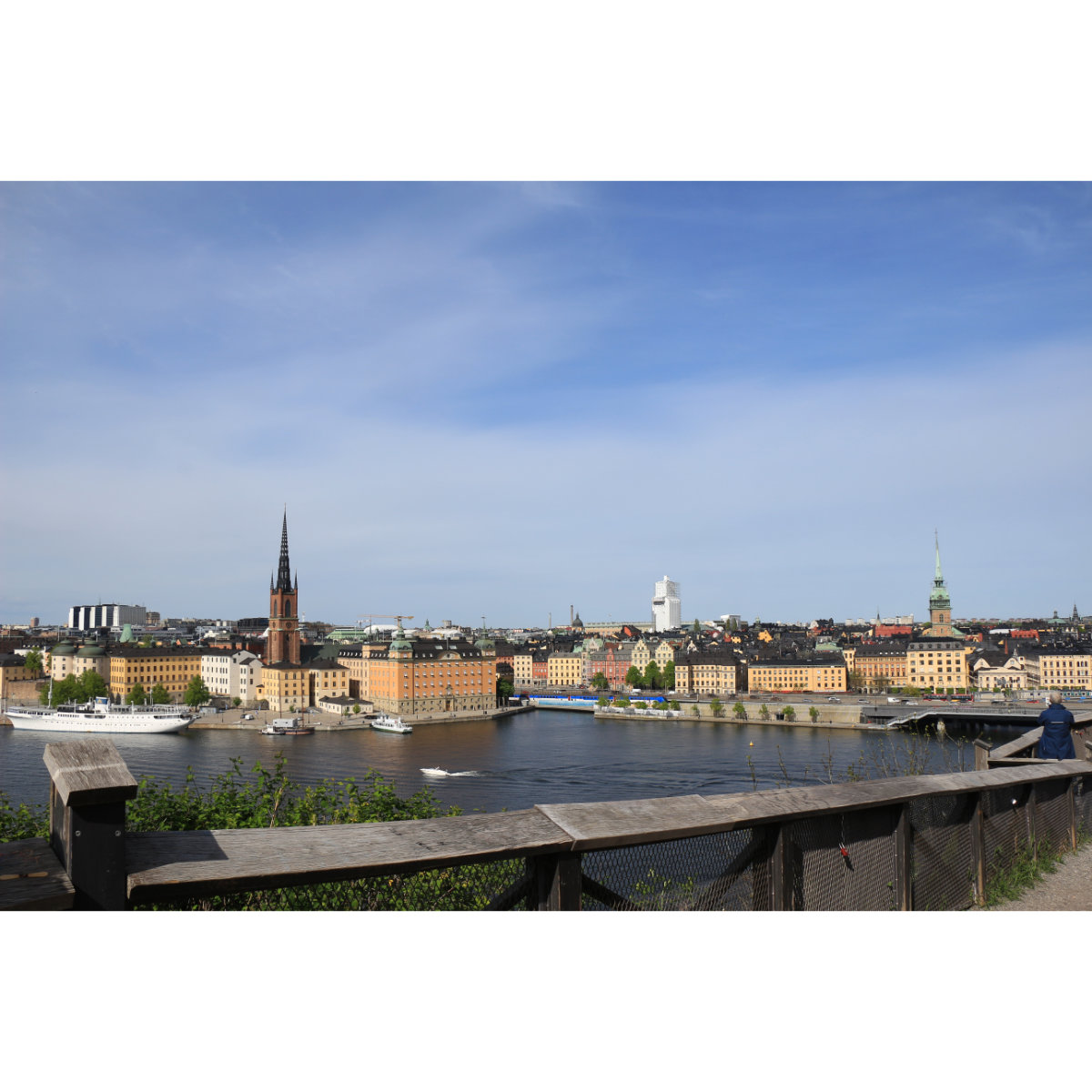 Durch Södermalm in die Altstadt: Blick aus dem Fenster der Sky-Bar im 28. Stock des Hochhauses - es gibt auch noch Holzhäuser mitten in der Stadt - Fahrzeugflotte eines Lieferdienstes - Södra Teatern - schmalste Gasse Stockholms - Ausblick von Mariaberget