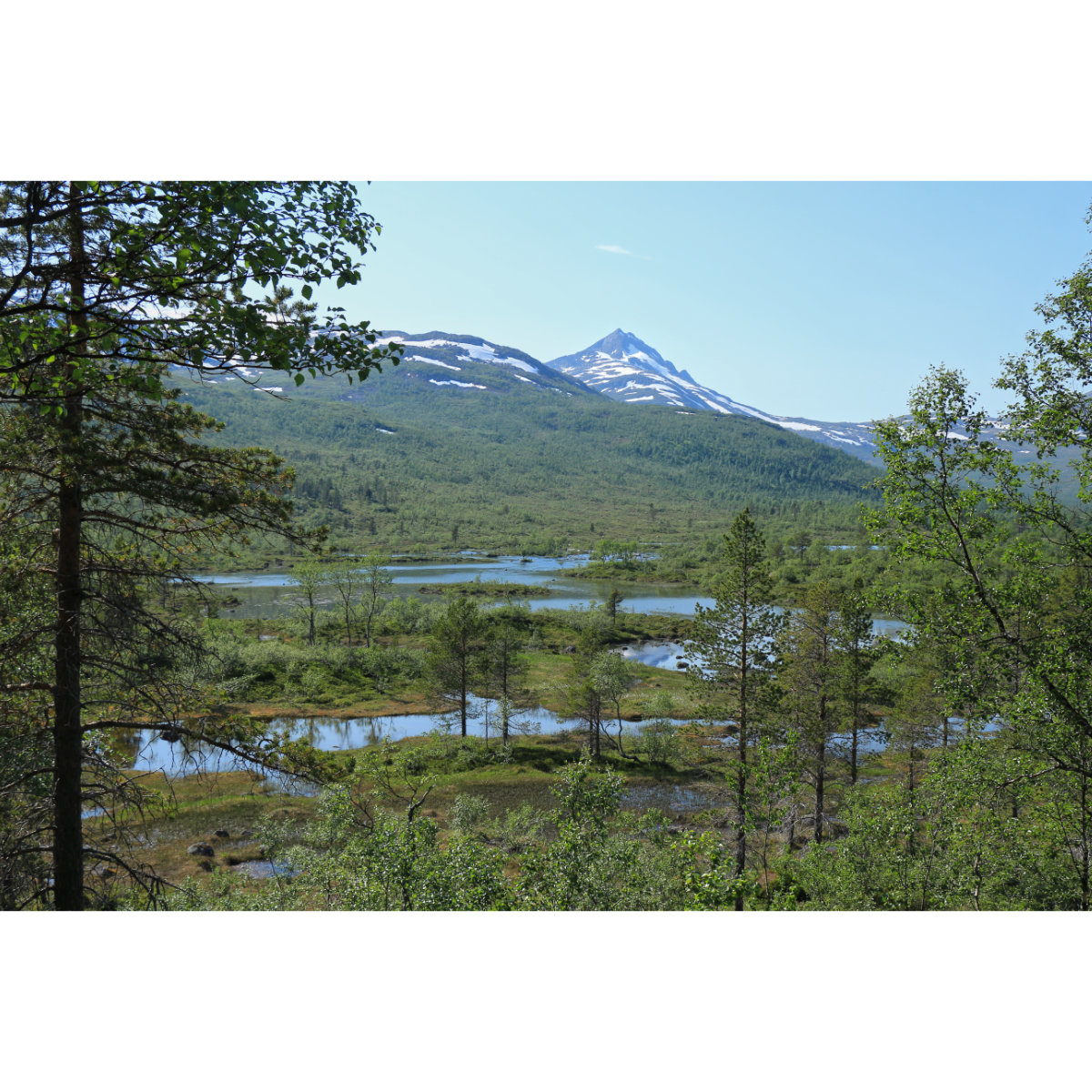 Im Südwesten der Insel Senja befindet sich der Ånderdalen Nationalpark. Bei 28°C und Sonne den ganzen Tag war die Tour ganz schön anstrengend. Der Weg ist zwar nicht wirklich schwierig, aber steinig, voller Wurzeln, manchmal matschig, führt über Holzplanken durchs Moor, dann wieder knackig bergauf. Zur Erholung gönnten wir uns 2 Nächte auf einem tollen Campingplatz. Wir stehen direkt am Wasser, die Abendstimmung ist herrlich und Besuch von einem Rentier bekamen wir auch noch.