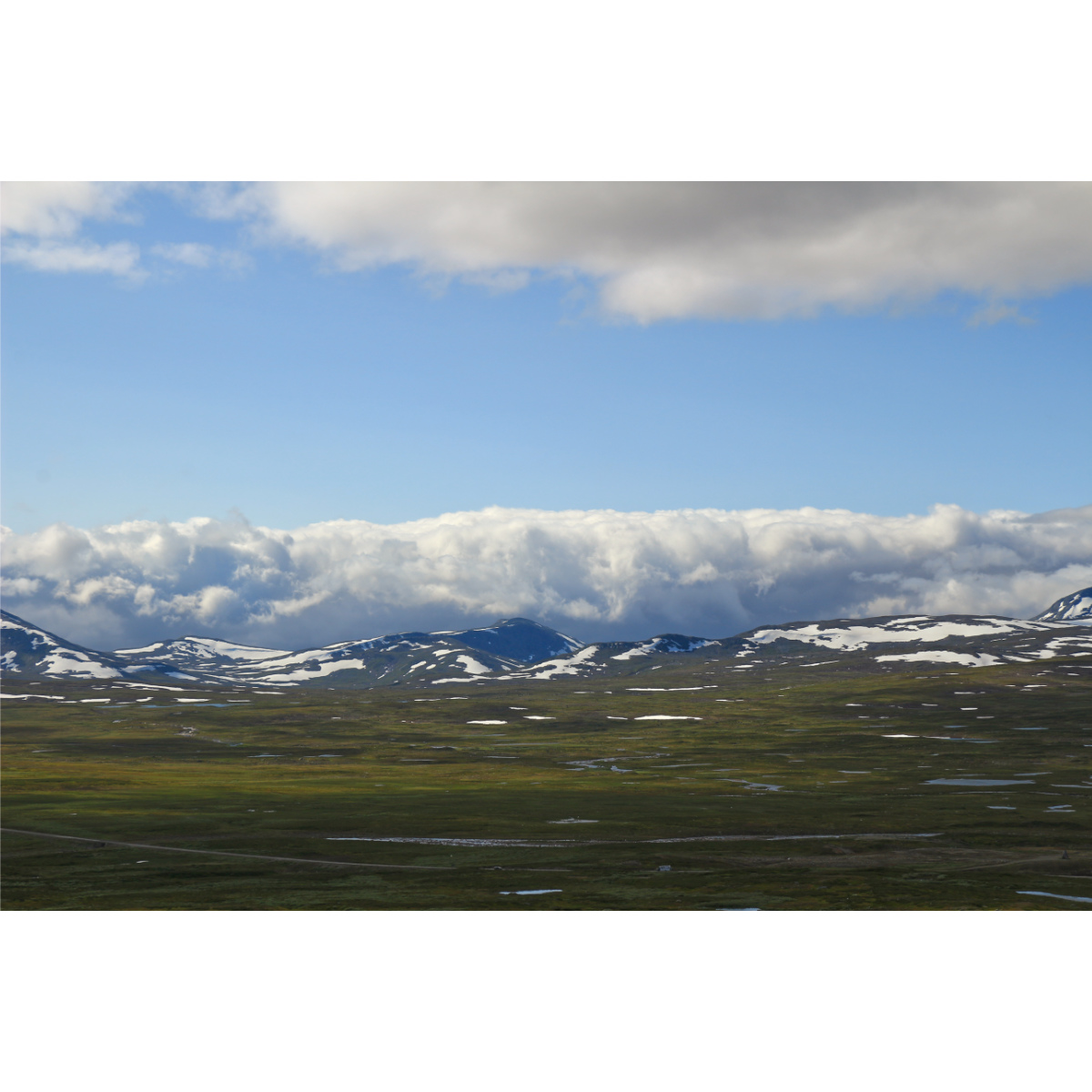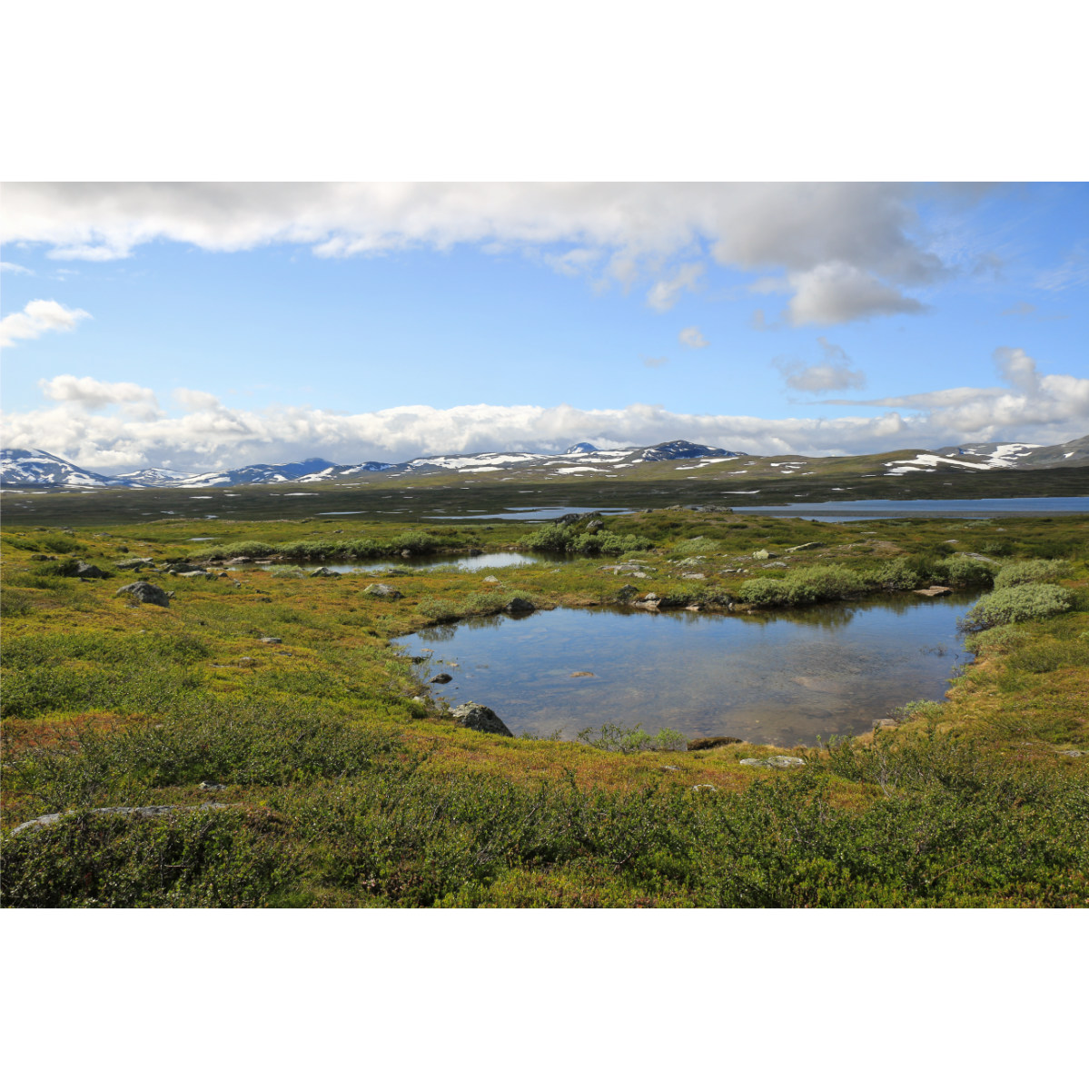 Wir sind auf dem Stekenjokk-Plateau angekommen, die am höchsten gelegene Stelle an dieser Straße (876m). Hier wurde in den 70er und 80er Jahren des letzten Jahrhunderts Erz abgebaut. Dafür wurde die Straße ursprünglich gebaut. Heute wird sie vor allem touristisch genutzt. Auf dem Weg hierher kamen wir an zahllosen Ferienhäusern vorbei, was den Eindruck von Wildnis etwas stört. Trotzdem ist die Natur hier einfach umwerfend. Viel Wasser, immer wieder wilde Flüsse mit Stromschnellen und kleinen Wasserfällen, große Seen, Berge ringsum - teils noch mit letzten Schneeresten. Die Kalfjäll (kahle Hochfläche) genannte Hochebene befindet sich oberhalb der Baumgrenze, es gibt nur Heide und Wasser und keine Häuser mehr. Es ist wunderschön hier!