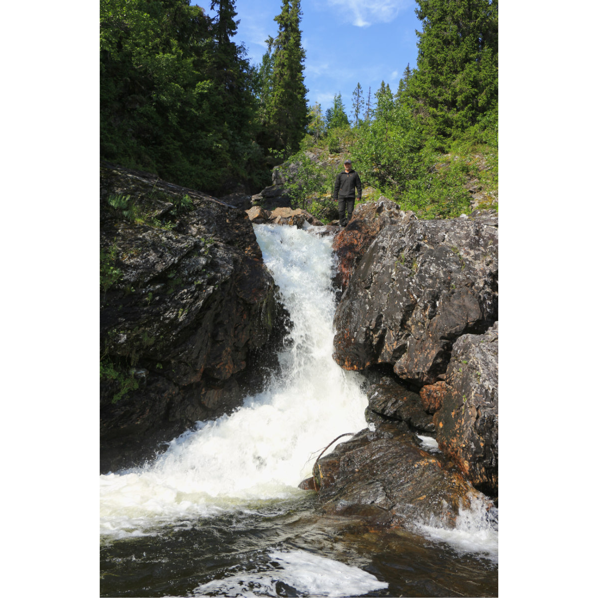 Das Bjurälven Naturreservat ist ein Karstgebiet mit Dolinen und Höhlen. Der Fluss Bjurälven verläuft teilweise unterirdisch, verschwindet einfach und tritt an anderer Stelle wieder zutage. Bis zu diesem Bereich sind wir leider nicht vorgedrungen, das wäre eine ganze Tagestour gewesen, kurz nach dem Wasserfall drehten wir um. Deshalb gibt es heute ein bißchen Flora und Fauna, die Strecke durch den Wald und übers Moor war nämlich auch sehr schön.