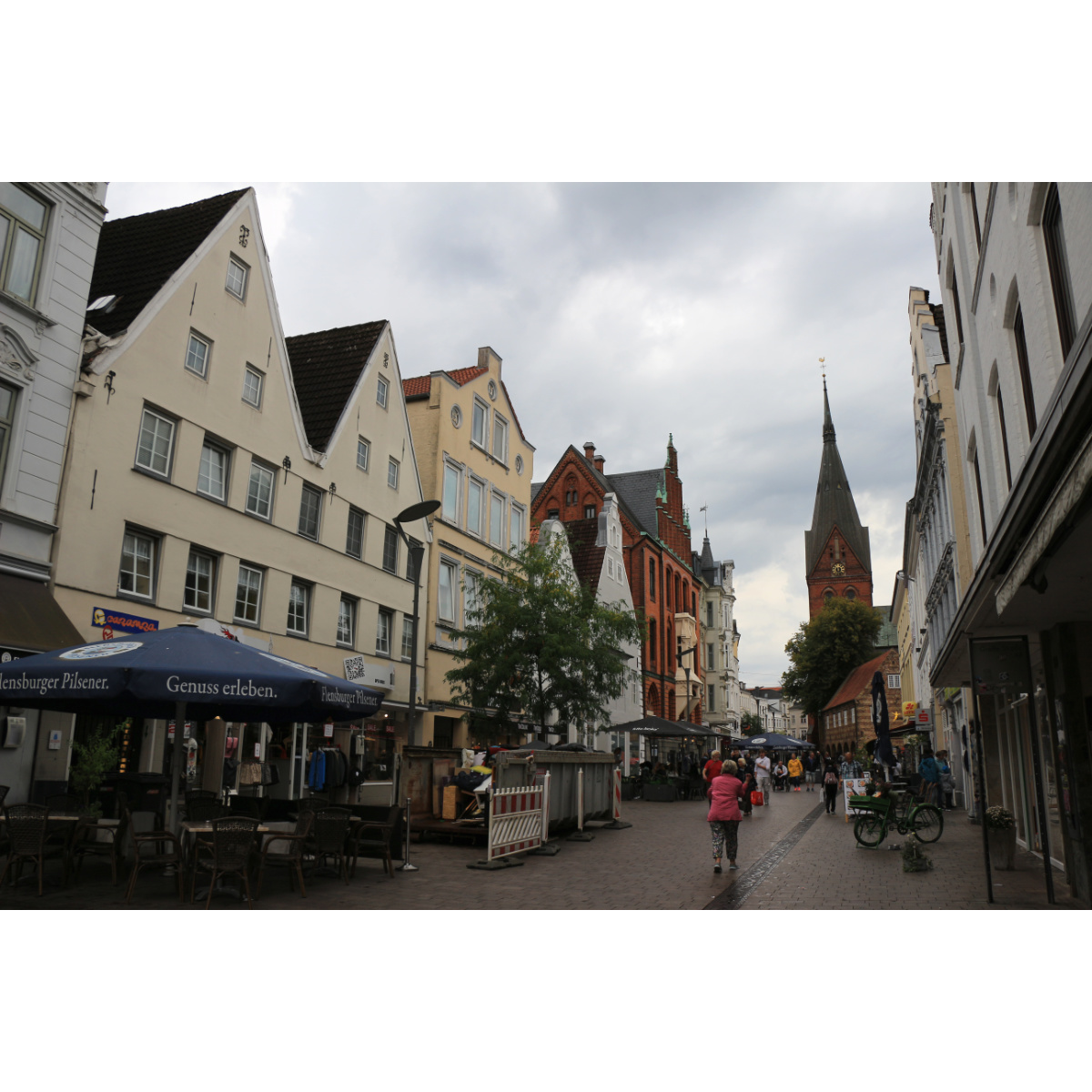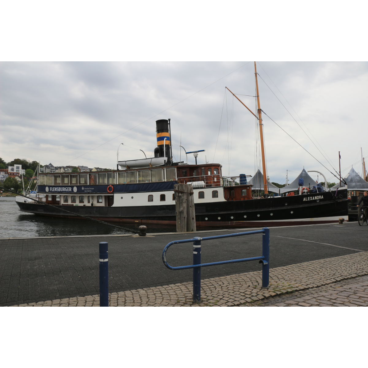 Strömender Regen hat uns zum Abbruch unserer Tour durch Flensburg gezwungen. Trotzdem haben wir einen schönen Eindruck von der Stadt bekommen, die mit vielen schönen, alten Gebäuden, einem historischen Hafen und belebten Einkaufsstraßen aufwarten kann: Blick auf die Westseite der Hafenspitze mit dem Turm der Marienkirche und dem Kompagnietor von 1602 - Blick auf die Ostseite mit dem Turm von St. Jürgen im Hintergrund und einer Muschelzucht im Vordergrund - Salondampfer Alexandra, das maritime Wahrzeichen Flensburgs - Einkaufsstraße - Rum Manufaktur - Stadttheater, 1894 eröffnet- Heinrich-Sauermann-Haus auf dem Museumsberg - Jugendstilfassade - Nikolaikirche am Südermarkt - Flensburger Brauerei mit Plop-Shop.