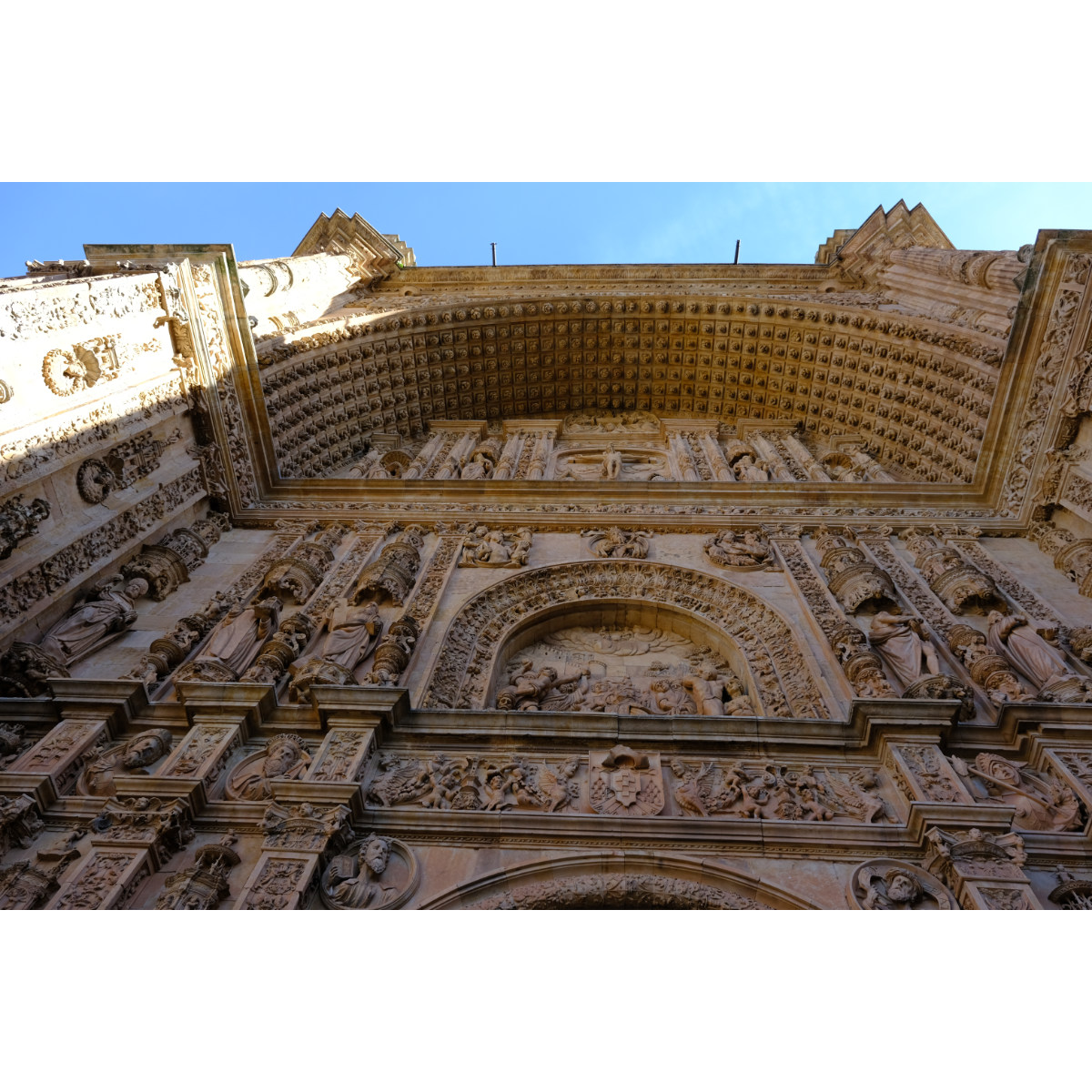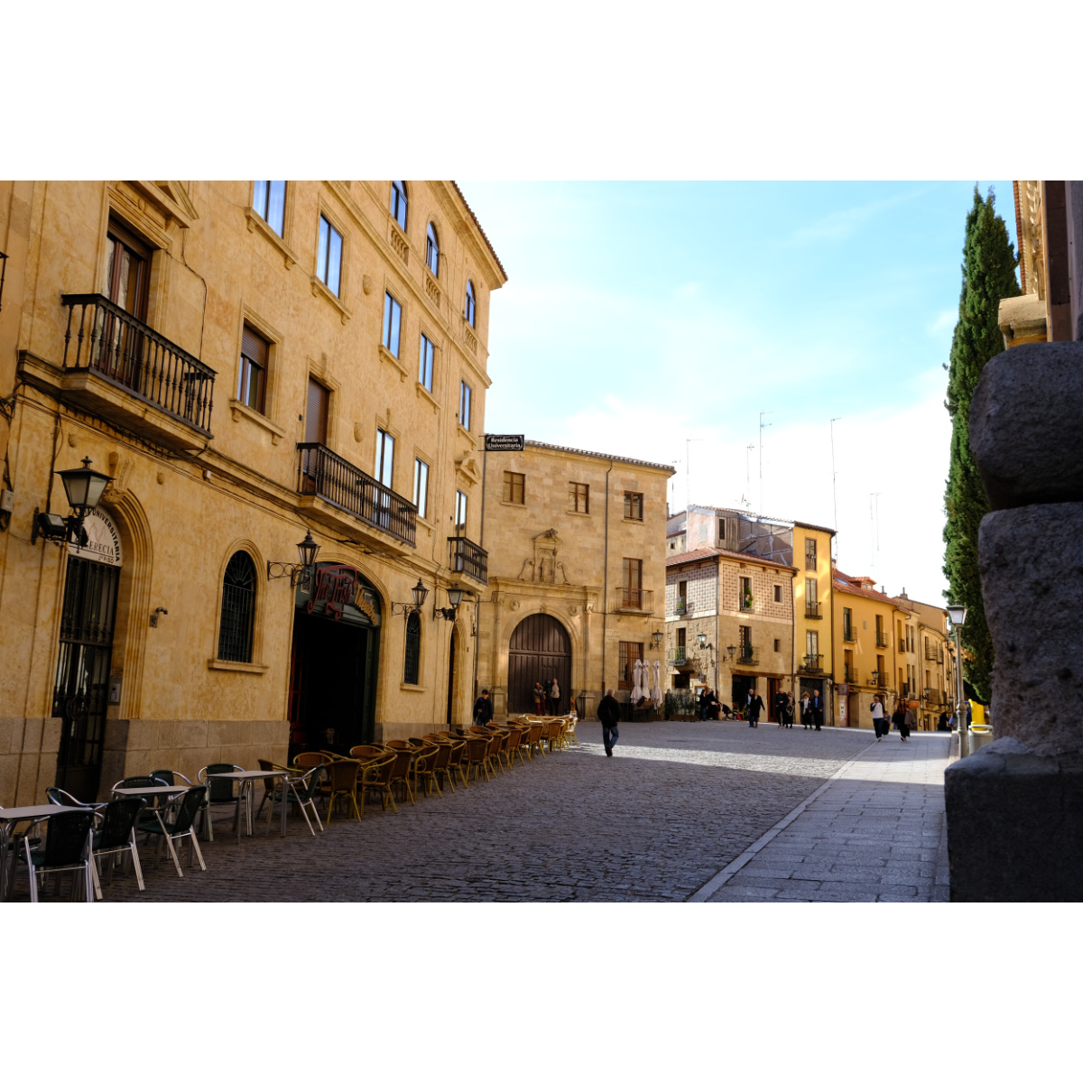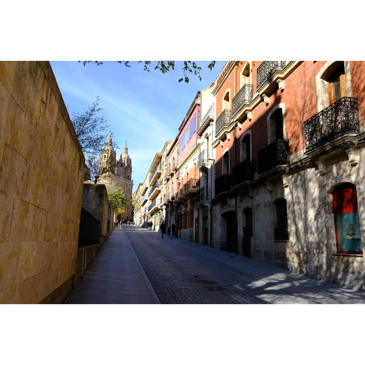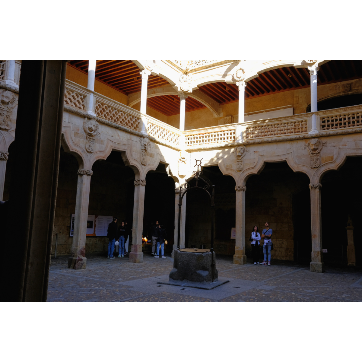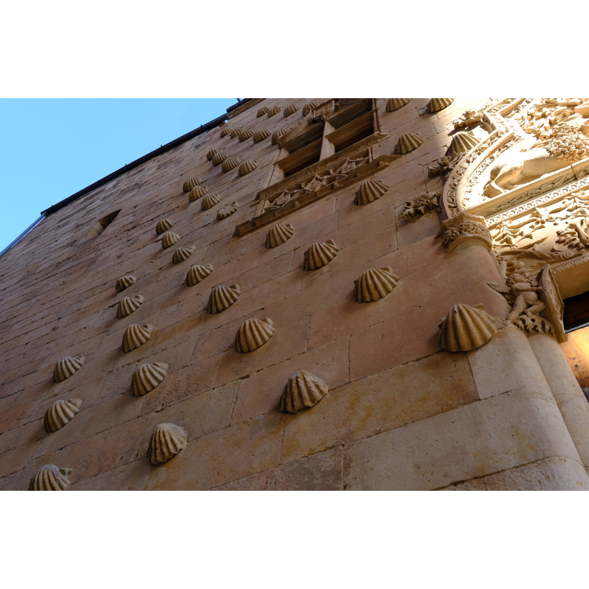 Ein Spaziergang durch die Straßen der Altstadt von Salamanca, UNESCO Weltkulturerbe, führte uns zunächst zu Kirche und Kloster San Esteban. Auf dem Weg zur Kirche La Clerecía aus dem 17. Jh. bekamen wir tolle Bocadillos in einem Laden für spanischen Schinken, die waren richtig gut. Weiter ging’s zur Bibliothek, an der Casa de las Conchas vorbei …