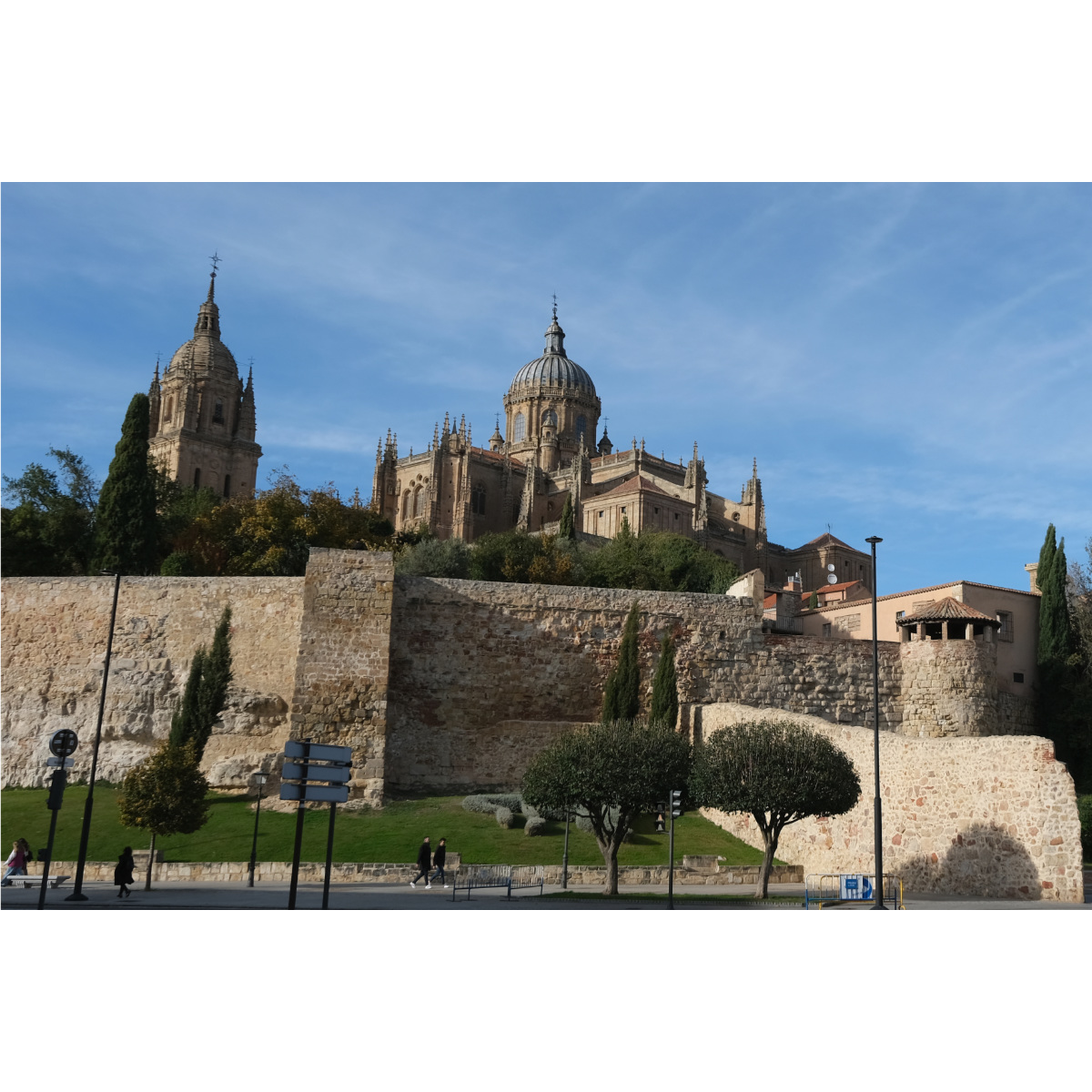 Salamanca II. … zur Kathedrale, durch die Fußgängerzone zur Plaza Mayor, dann zur Casa Lis (Art Deco Museum). Zum Ende unseres Rundgangs noch einmal einen Blick auf die Kathedrale, ebenso von der anderen Flussseite aus.
