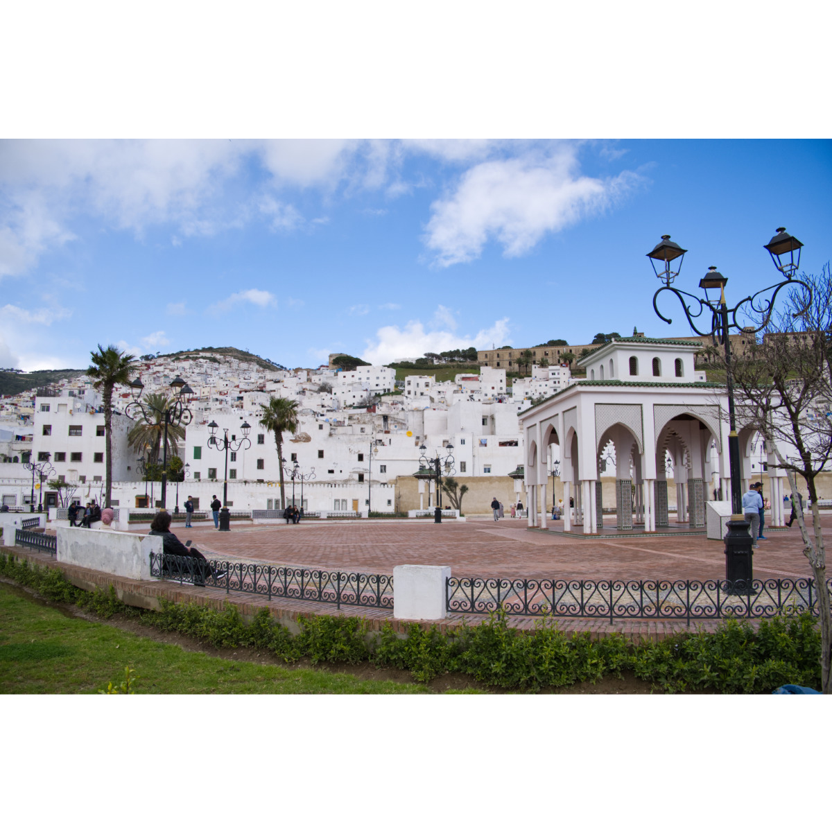 Tétouan, auch „Die weiße Taube“ genannt: Königspalast - in der Stadt - Geflügelgeschäft - Blick hinauf zur Medina, seit 1997 UNESCO Weltkulturerbe, und zur Kasbah - Tor zur Medina - Töpferwaren im Souk - Busbahnhof - Blick auf die Ausläufer des Rif-Gebirges