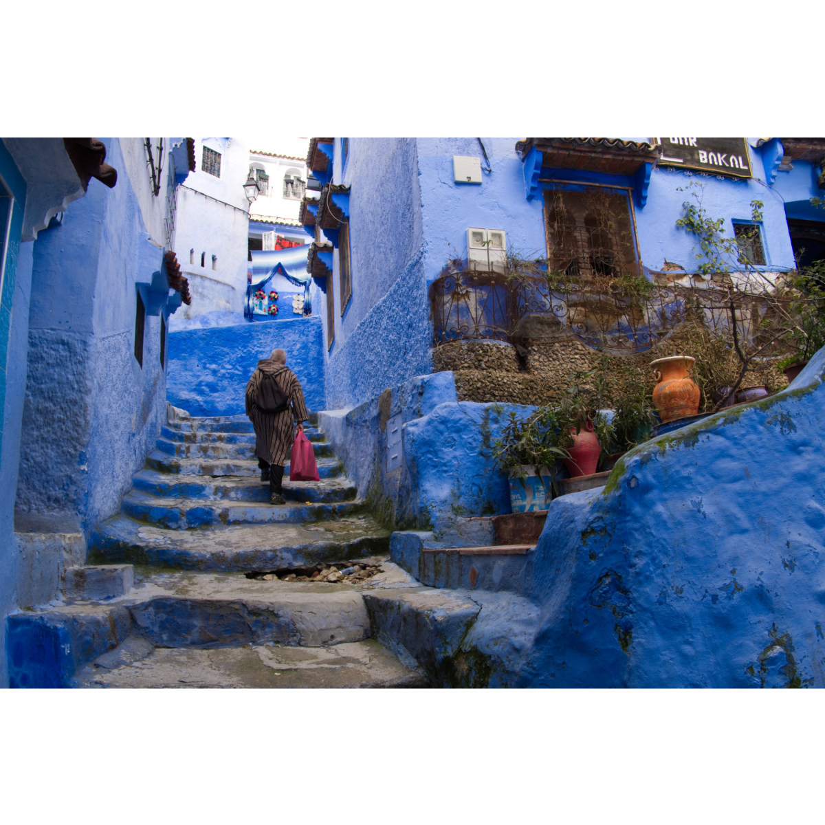 Bis auf 600m Höhe schmiegt sich Chefchaouen an die Hänge des nordwestlichen Rif-Gebirges. Die blaue Farbe der blau- und weißgetünchten Häuser soll vor dem bösen Blick schützen. Trotz des hauptsächlich touristisch orientierten Angebots ist die alte Medina ganz zauberhaft und man kann unbehelligt durch die Gassen flanieren. Wir haben den Nachmittag bis zum Einsetzen des Regens sehr genossen.
