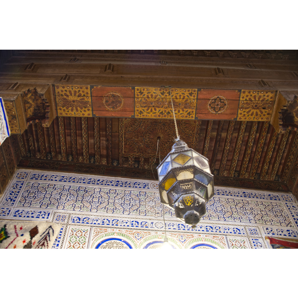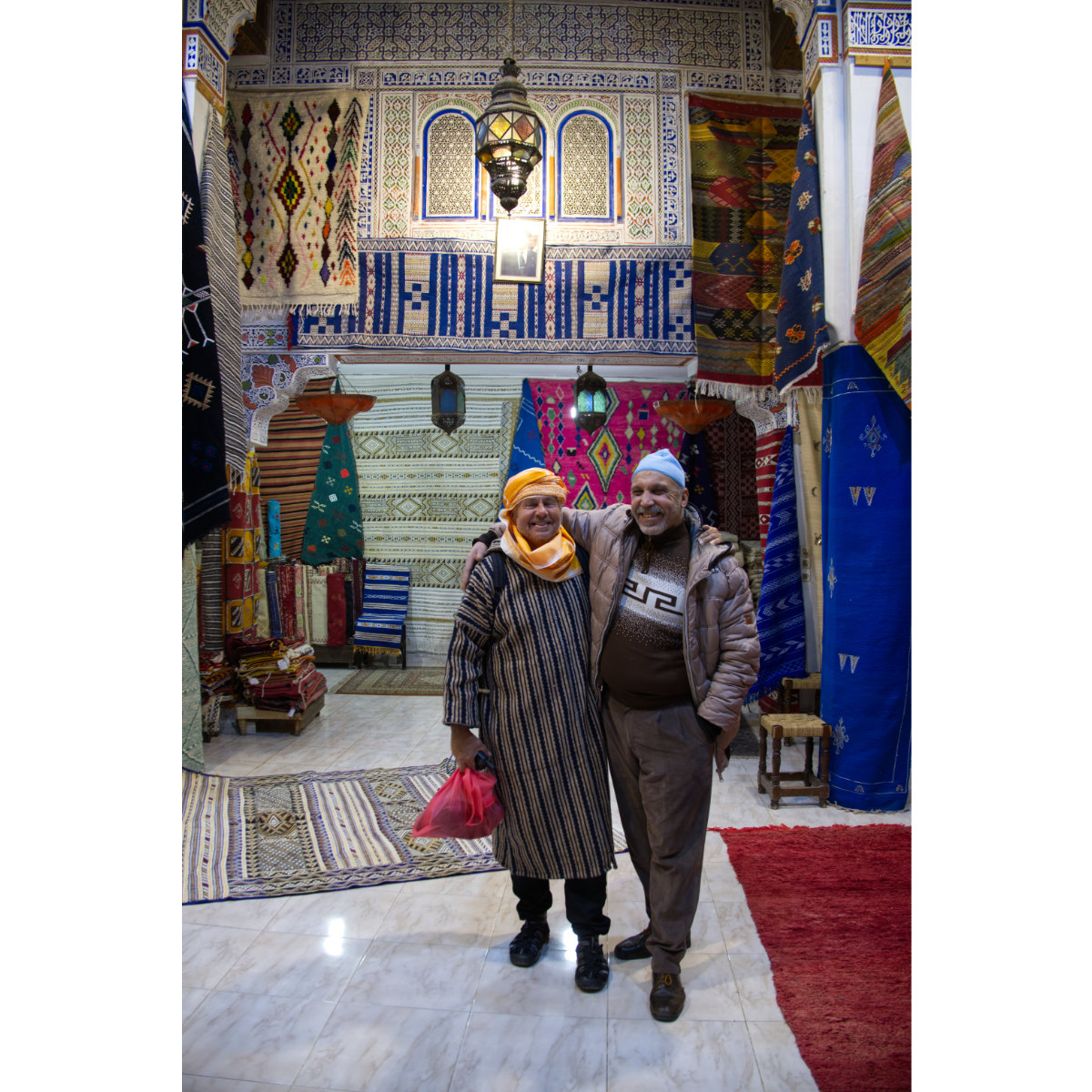 Meknès ist nicht nur eine der 4 Königsstädte sonder auch das Zentrum der Berber im Mittleren Atlas. Die Stadt gleicht derzeit einer Großbaustelle, viele Sehenswürdigkeiten sind nicht zugänglich, so spazierten wir lieber durch den Souk. Da Bernd seine Berber-Djellaba an hatte wurden wir in einen Berberladen mit Gewürzen, Kräutern und Arganöl-Produkten geführt. Dieser wird von einer Kooperative geschiedener oder verwitweter Frauen betrieben. Wir kauften Gewürze und Berbertee. Später trafen wir die Dame aus dem Laden wieder und sie führte uns zu einem anderen Berberladen in der Nähe (La Maison Berbère Benamar, 2, Sidi Amar Bouaouada). Diese Organisation vertritt 45 Berberdörfer aus der Umgebung und bietet deren Produkte an: z.B. wunderschöne, handgearbeitete Teppiche, geknüpft, gewoben, bestickt aus Schafwolle und Agavenseide, mit Pflanzenfarben gefärbt. Leider haben wir keinen Platz dafür im Auto … Außerdem sind mir einige Fotos abhanden gekommen - wir müssen auf der nächsten Marokkoreise noch einmal wiederkommen …