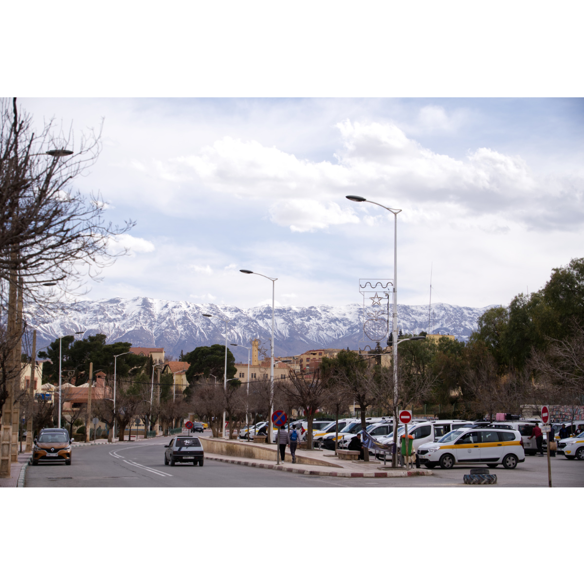 Nach schöner Fahrt über den Mittleren Atlas erreichten wir Midelt. Die Stadt hat keine historisch bedeutsamen Bauten zu bieten, dafür einen beeindruckenden Blick auf den Jbel Ayachi im Hohen Atlas, 3747m hoch. Ayachi heißt auch das gesamte Bergmassiv mit ca. 20km Länge, mit mehreren Dreitausendern.