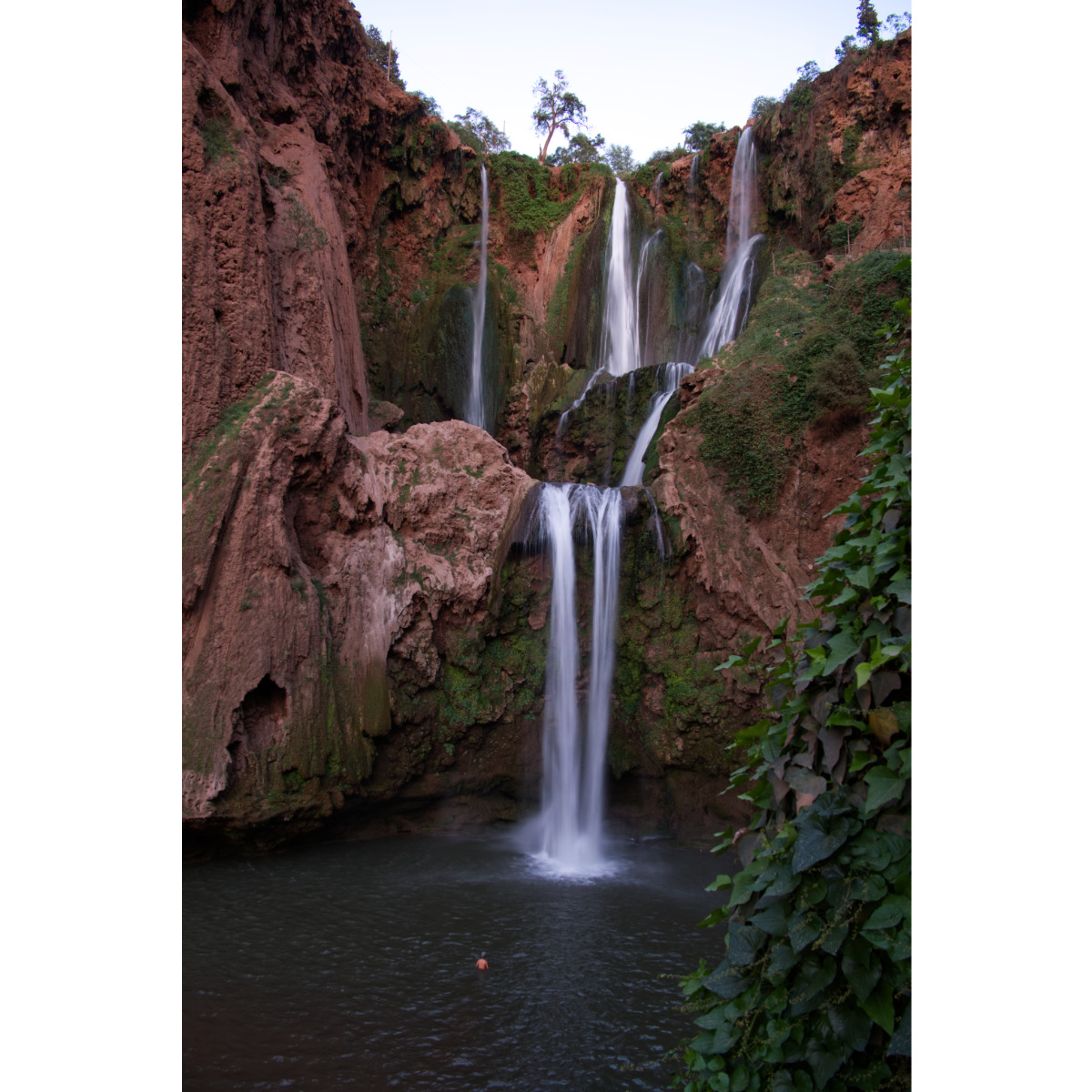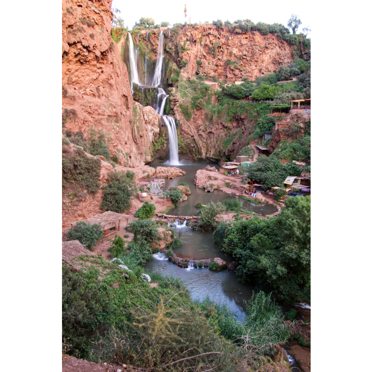 Weiter im Mittleren Atlas erreichten wir die Wasserfälle bei Ouzoud. In mehreren Kaskaden und über drei Stufen fällt das Wasser über 100m in die Tiefe in einen kleinen See. Wir sind ein paar Kilometer bis zum Ende des Weges entlang des Flusses gewandert, dort ist nochmal ein kleiner Wasserfall. Zurück am See kann man sich übersetzen lassen und auf der anderen Seite viiiiiele Stufen wieder hinaufgehen oder sich von einem Esel hinauftragen lassen. Wir waren zu spät dran und mussten den See auf einem schmalen Wall überqueren und die Treppen selber hochsteigen ….