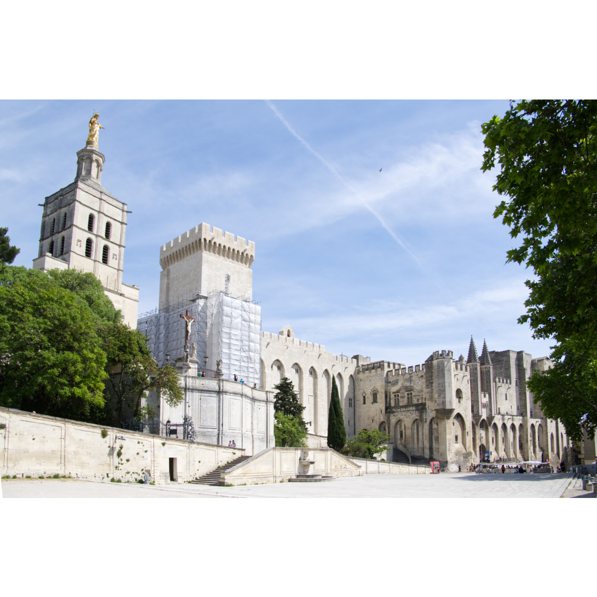 Avignon - nein, wir haben nicht auf der Brücke getanzt, wir haben uns den Eintritt gespart und uns lieber einen Aperitif genehmigt. Vorher waren wir natürlich eine Runde in der Stadt: Vom schönen CP auf der Île de La Barthelasse mit der kostenlosen Fähre übergesetzt - auf den Rocher des Doms gestiegen mit Papstpalast - Kathedrale - Musée du Petit Palais - weiter zu Les Halles - Rue des Teinturiers - Maison du Quatre de Chiffre