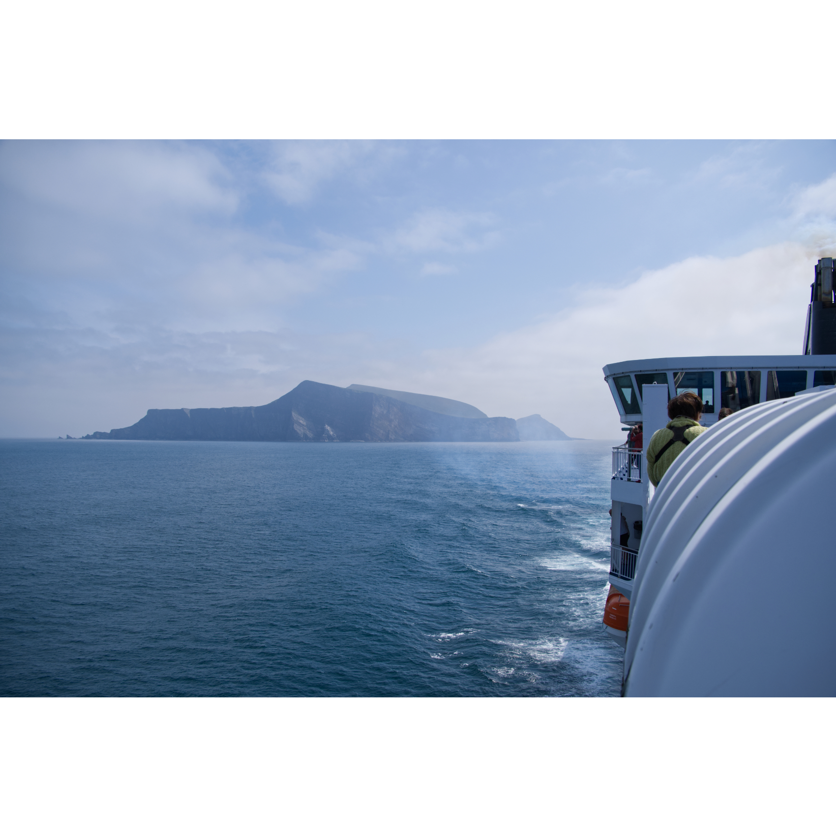 Abfahrt mit der Fähre in Hirtshals am Nachmittag. Nach einer ruhigen Nacht ohne nennenswerten Wellengang passierten wir am nächsten Tag die Shetland Islands. Basstölpel und Möwen flogen in rasantem Tempo ums Schiff. Am späten Abend tauchten die Färöer aus dem Dunst auf, gegen 22 Uhr liefen wir in den Hafen von Tórshavn ein. Das Ausschiffen verzögerte sich, es wurde spät. Als einer der ersten Camper an Board fuhren wir als einer der letzten vom Schiff - dann war der Campingplatz voll … eine gute halbe Stunde später gegen eins erreichten wir den nächstgelegenen Platz in Vestmanna
