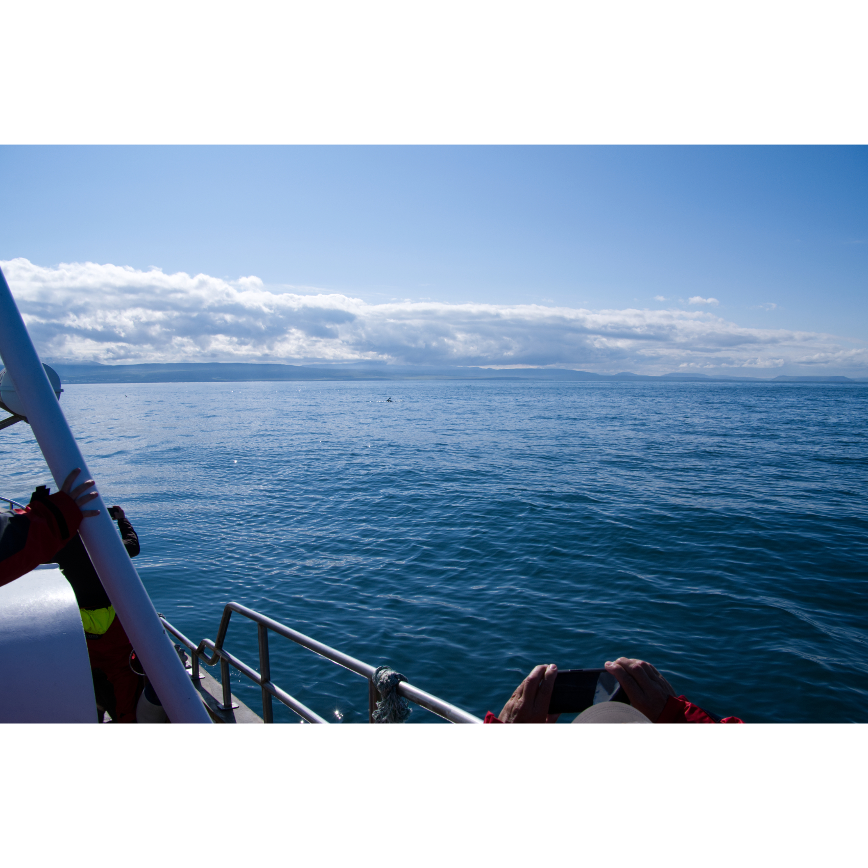 Mit den Friends of Moby Dick aus Húsavík sind wir auf deren Boot Moby Dick zum Whale Watching rausgefahren. Dieser Anbieter legt großen Wert darauf die Tiere nicht zu bedrängen, nicht jagen sondern beobachten. Bei schönem Wetter, angenehmen Temperaturen und ruhiger See war es ein tolles Erlebnis. Wir haben mehrere Buckelwale und einen Minkwal gesichtet. Am Muster der Finnen (Rückenflossen) und Fluken (Schwanzflossen) können die Individuen unterschieden werden. Mada, die Meeresbiologin hat uns viel zu den Walen erklärt, unter anderem, dass sie, wenn sie aus dem Wasser springen, sich bedrängt fühlen. Spätestens dann sollte man sie in Ruhe lassen. Diese Situation sahen wir, als mehrere Boote von verschiedenen Richtungen auf einen Buckelwal zusteuerten. Wir sind dann abgedreht, die anderen Boote haben den Wal noch verfolgt … die Kehrseite des Tourismus …
