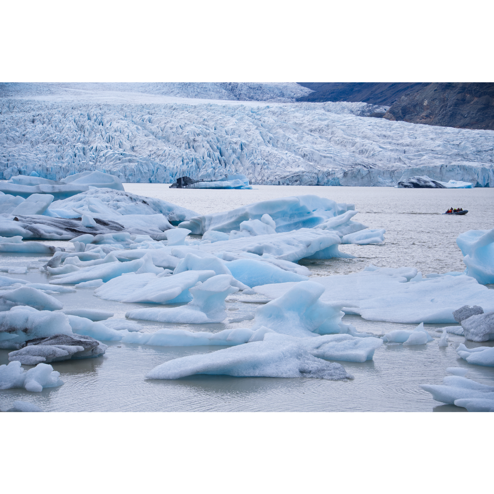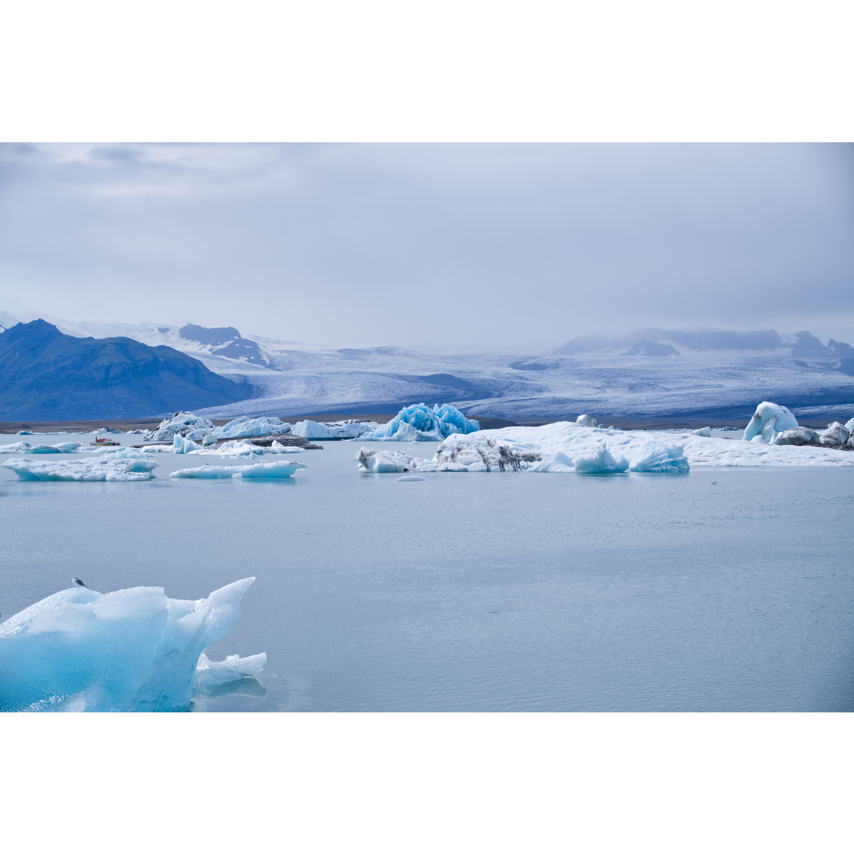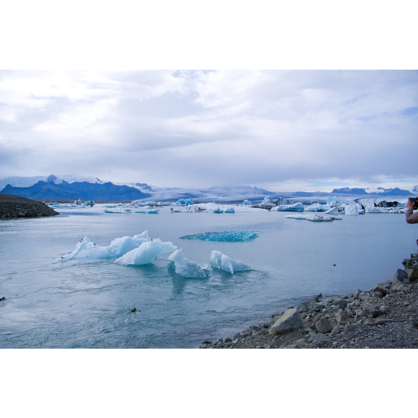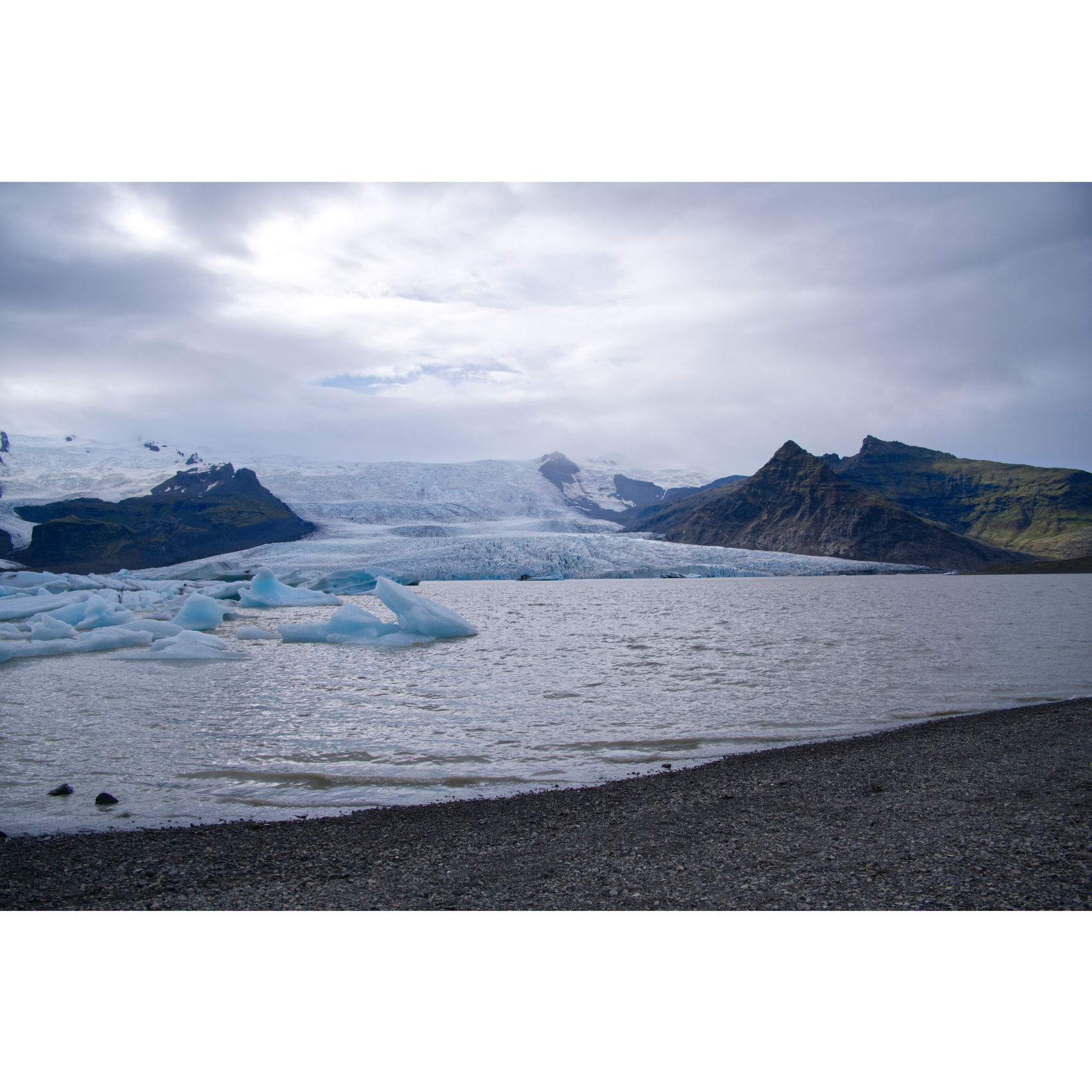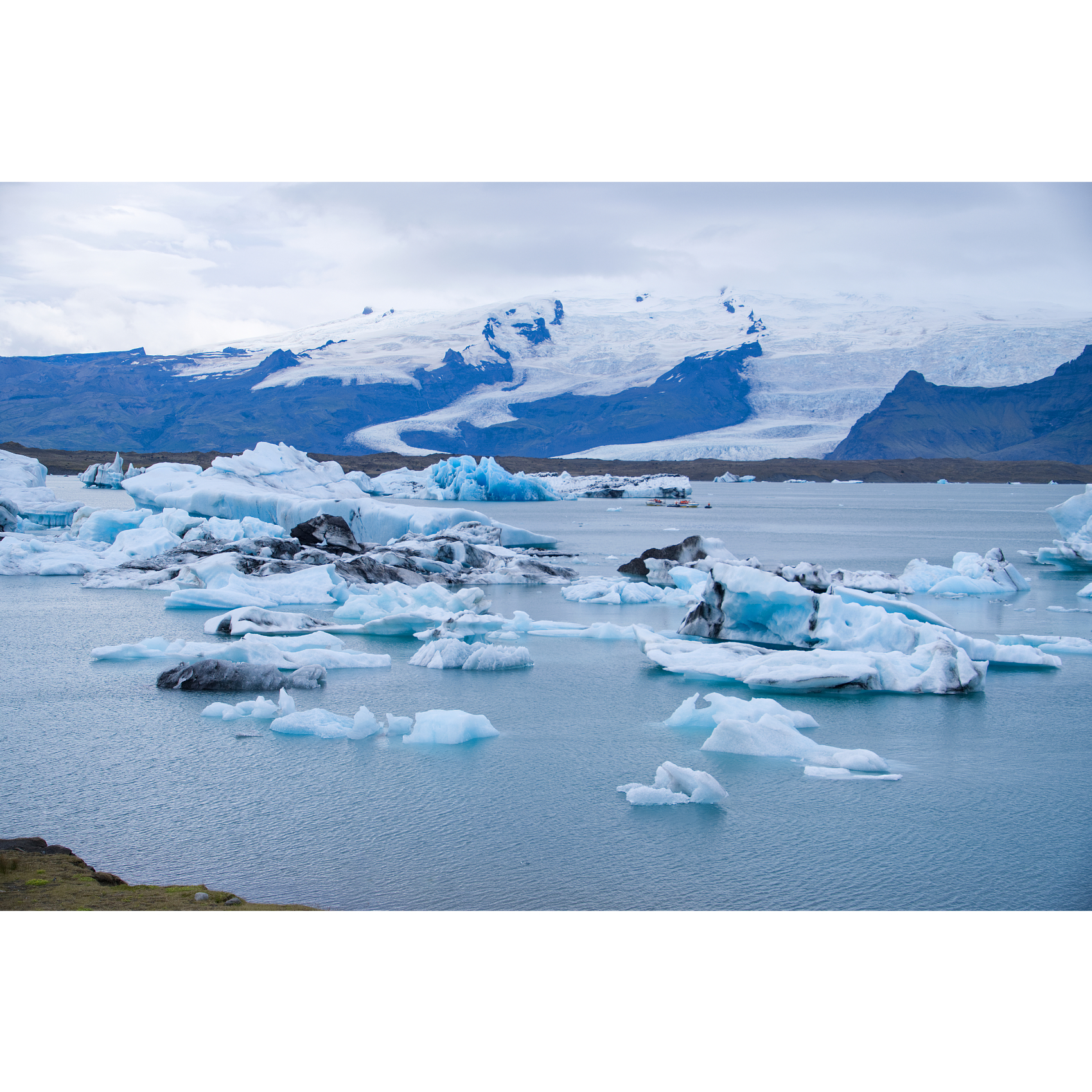 Die Gletscherlagune Jökulsárlón liegt direkt neben dem Vatnajökull, Europas größtem Gletscher. Sie ist Teil des Vatnajökull-Nationalparks, der von Eis, Gletscherzungen, rauem Hochland und Lavalandschaften geprägt ist. Er ist Islands größter Nationalpark. Die Lagune entsteht auf natürlichem Wege aus dem Wasser, das vom Gletscher abschmilzt. Sie wird Jahr für Jahr größer, während große Eisblöcke von dem schrumpfenden Gletscher abbrechen - hier sind die Auswirkungen der Erderwärmung deutlich sichtbar. Die Eisberge erreichen eine Höhe von bis zu 15 Metern. Deren Eis zeigt sich in Blau, von verschiedenen Kristallen im Eis und deren Reflexion, Weiß, sowie in Grautönen bis hin zu Schwarz, durch im Eis enthaltene Vulkanasche. Zum Abschied schaute kurz eine Robbe aus dem Wasser. Ein paar Kilometer weiter gibt es noch den Fjallsarlon, auch hier reicht die Gletscherzunge bis ans Wasser.