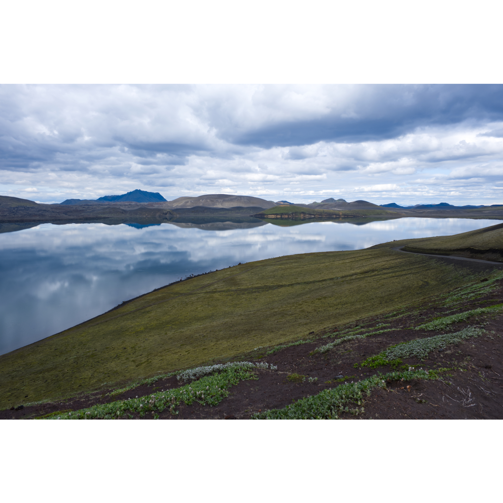 Wehmütig verließen wir diese magische Gegend. Nach wenigen Kilometern erreichten wir den Frostastaðavatn, den See des kalten Ortes. Wunderschön gelegen in einem Hochweidengebiet. Lavafelder reichen bis an bzw. In den See. Nach einiger Zeit bogen wir auf die F 26, die Sprengisandur-Piste ab. Mit 200km die längste der Hochlandpisten, 200km Wellblechpiste und Schlaglöcher, überwiegend grau-braune, staubige Steinwüste - der krasse Gegensatz zu Landmannalaugar - aber ein Abenteuer. Bis sich auf knapp halber Strecke ein unbekanntes Geräusch einstellte. Nach eingehender Prüfung stellte Bernd ein ausgebrochenes Domlager am Stoßdämpfer rechts vorne fest. Glücklicherweise waren wir nicht mehr weit vom geplanten Übernachtungsplatz entfernt, bis dorthin schafften wir es noch. Dann war guter Rat teuer. Aber hier gibt es hilfsbereite Menschen. Am nächsten Morgen kümmerte sich das Rescue-Team um die Beschaffung der Ersatzteile und den Transport hierher ins Nirgendwo. Die Zwangspause verhalf uns wenigstens dazu, den Fotostau der letzten Tage aufzuarbeiten und die Posts abzusetzen. Hat ja alles auch was Gutes …