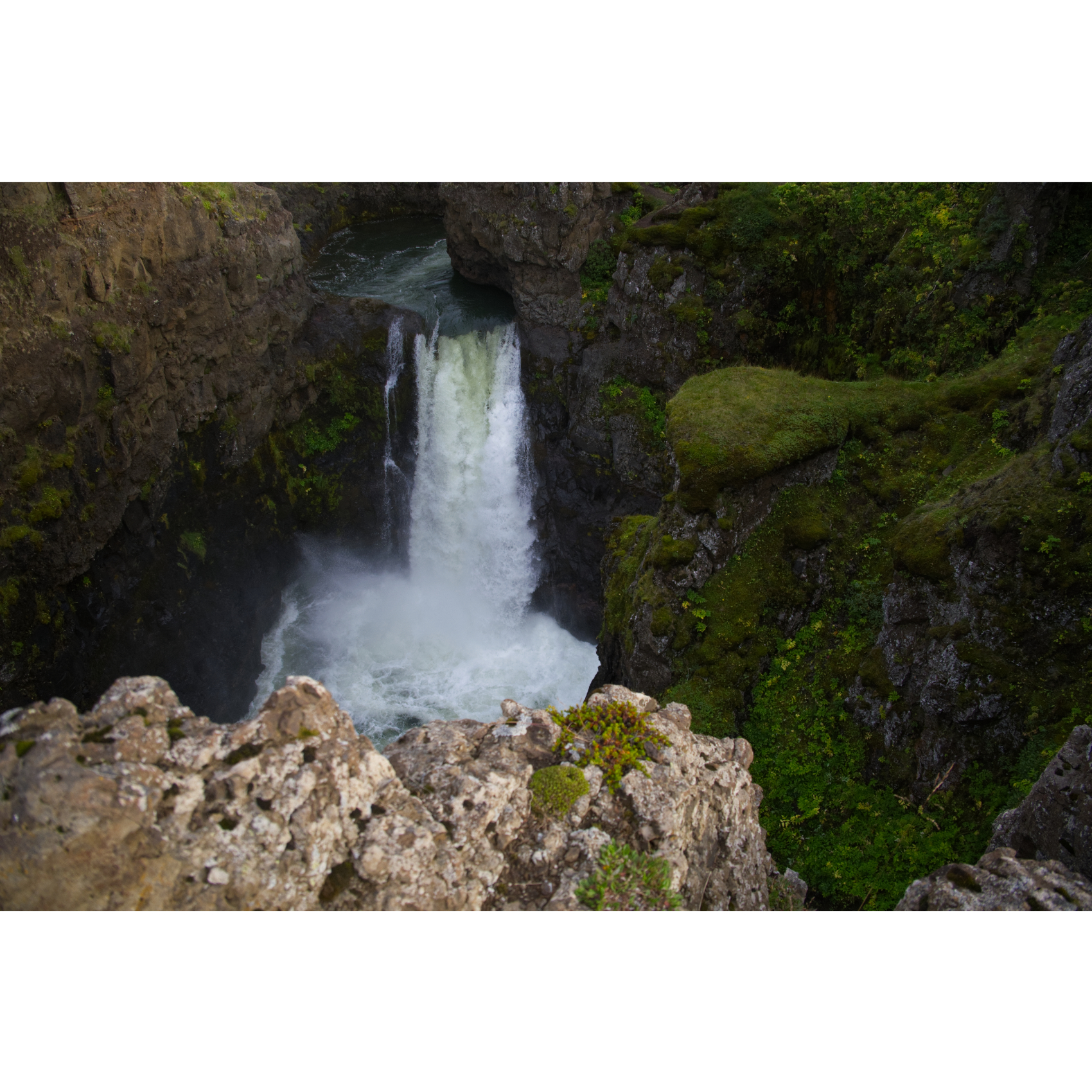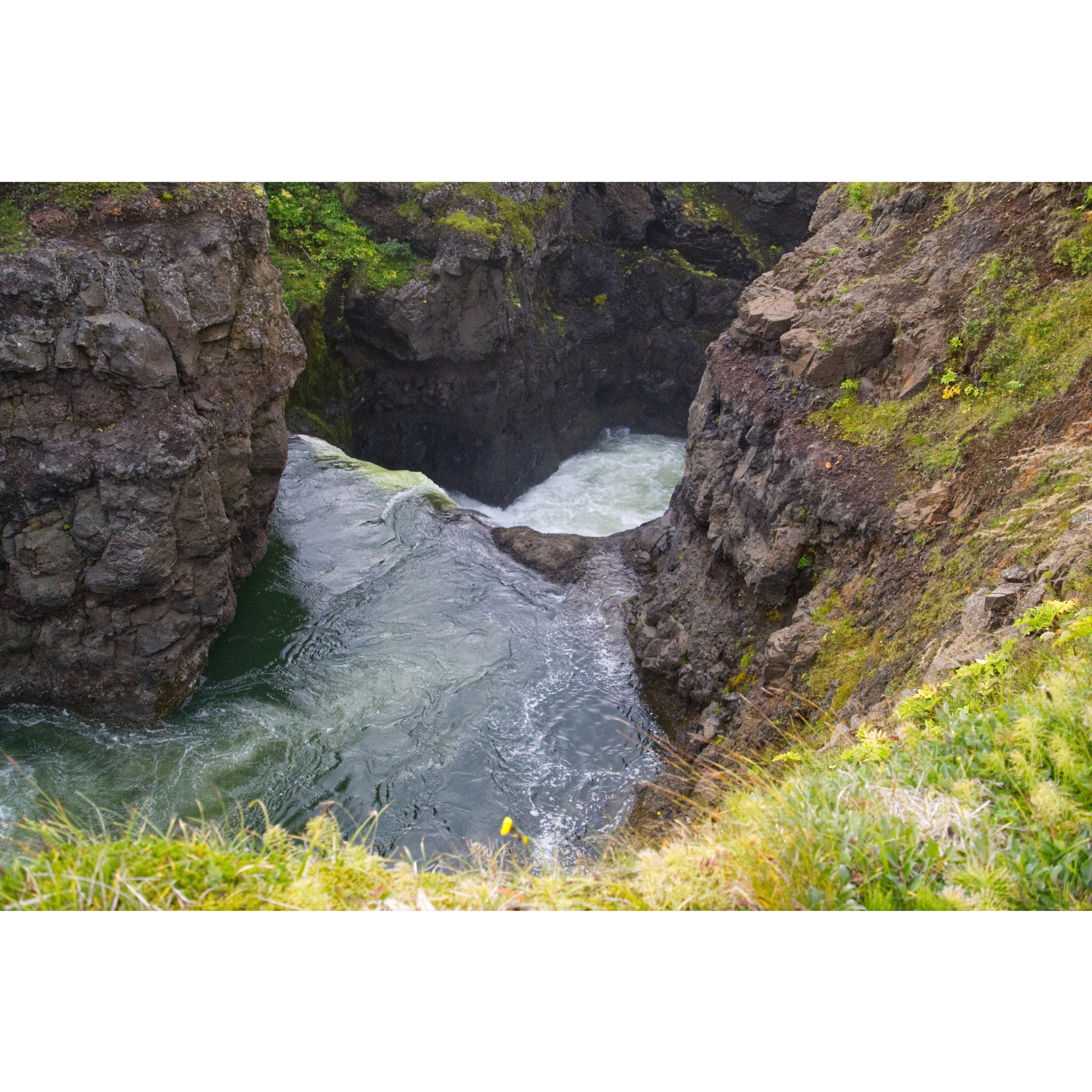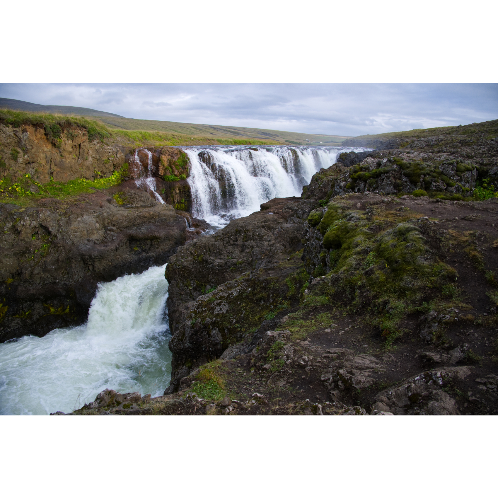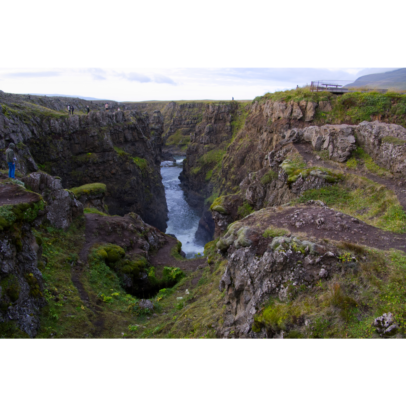Der Sage nach wurde der Kolugljúfur Canyon von dem Trollweib Kola gegraben, die auch darin lebte. Vielleicht war es aber auch der Fluß Viðidalsá, der sich da sein Bett gegraben hat. Die Schlucht ist jedenfalls zwischen 40 und 50 m tief und 1 km lang, man kann oben entlang wandern oder auf schmalen Pfaden darin herumkraxeln. Es gibt allerdings, wie in Island üblich, keine Absicherungen oder Halteseile, man muß schon selbst aufpassen. Die Wasserfälle Efrifoss, Kolufoss und Neðri-Kolufoss sind zwar eher klein, aber trotzdem schön anzuschauen.