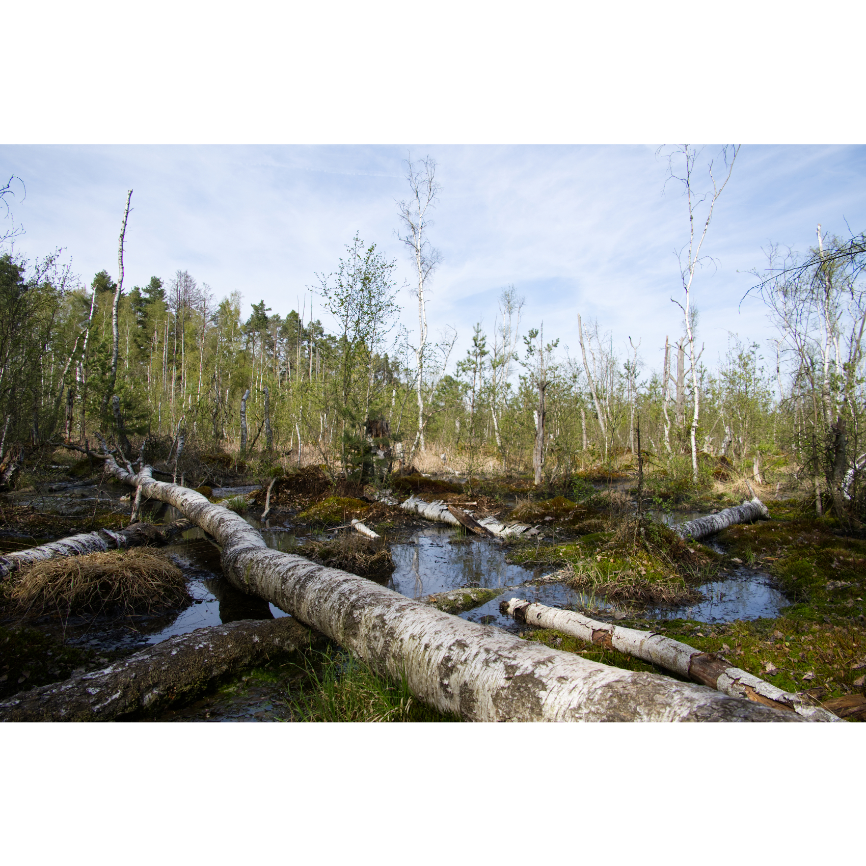 Das Schwenninger Moos ist ein Regenmoor und Quellgebiet des Neckar. Durch das Moor verläuft die europäische Wasserscheide. Gegen die zunehmende Verwaldung, die nach Ende des Torfabbaus begann, werden heute Moorschnucken eingesetzt, die den aufkommenden Bewuchs durch Birkensprösslinge im Inneren des Mooses bekämpfen. Die Moorschnucken waren heute nicht bei der Arbeit, dafür ließen sich ein paar Vögel beobachten.