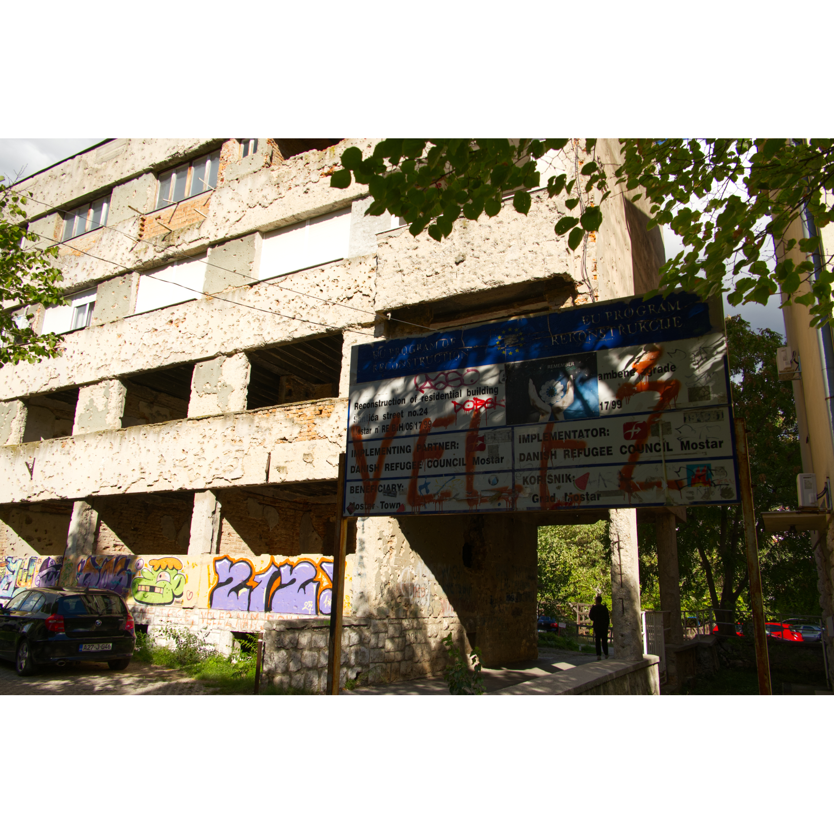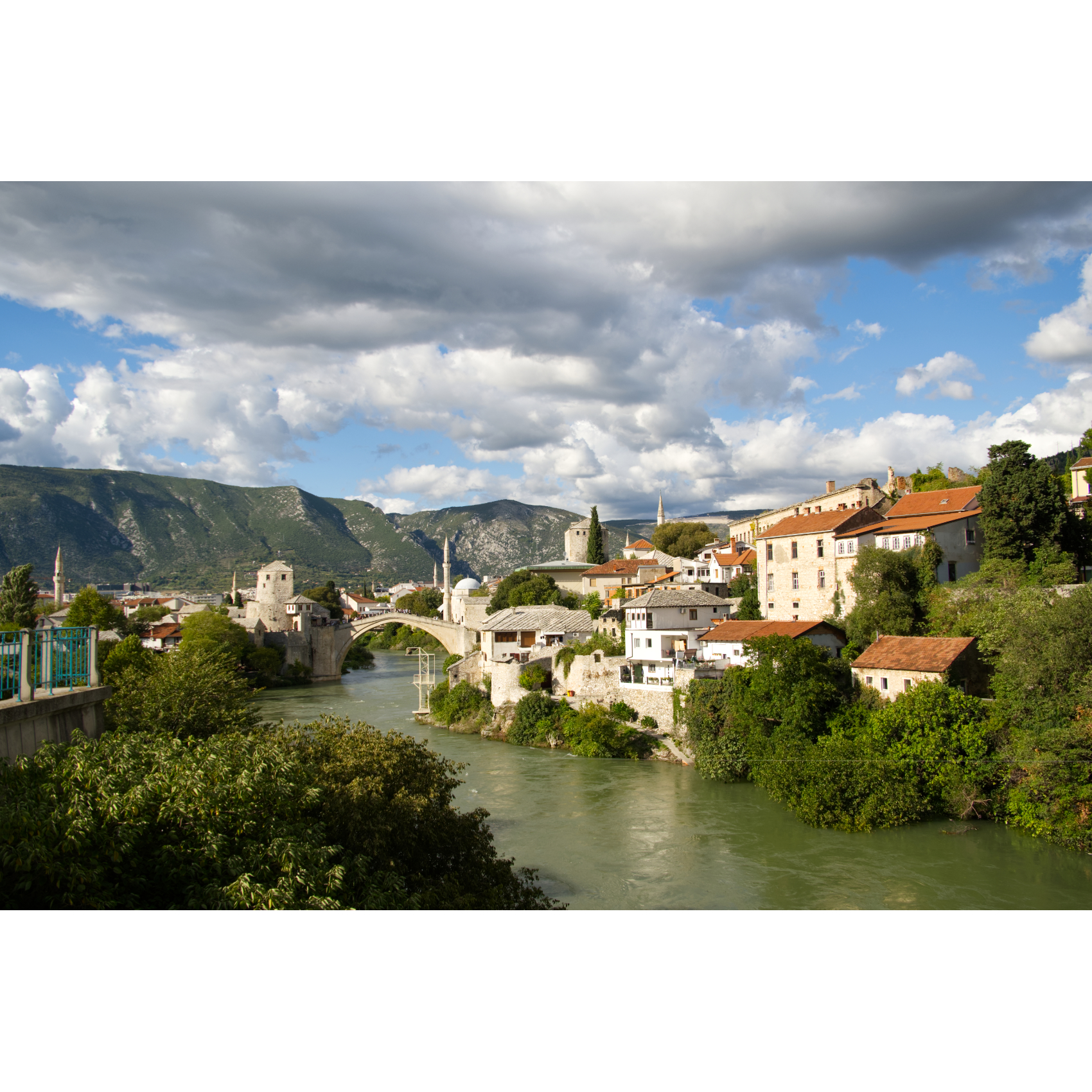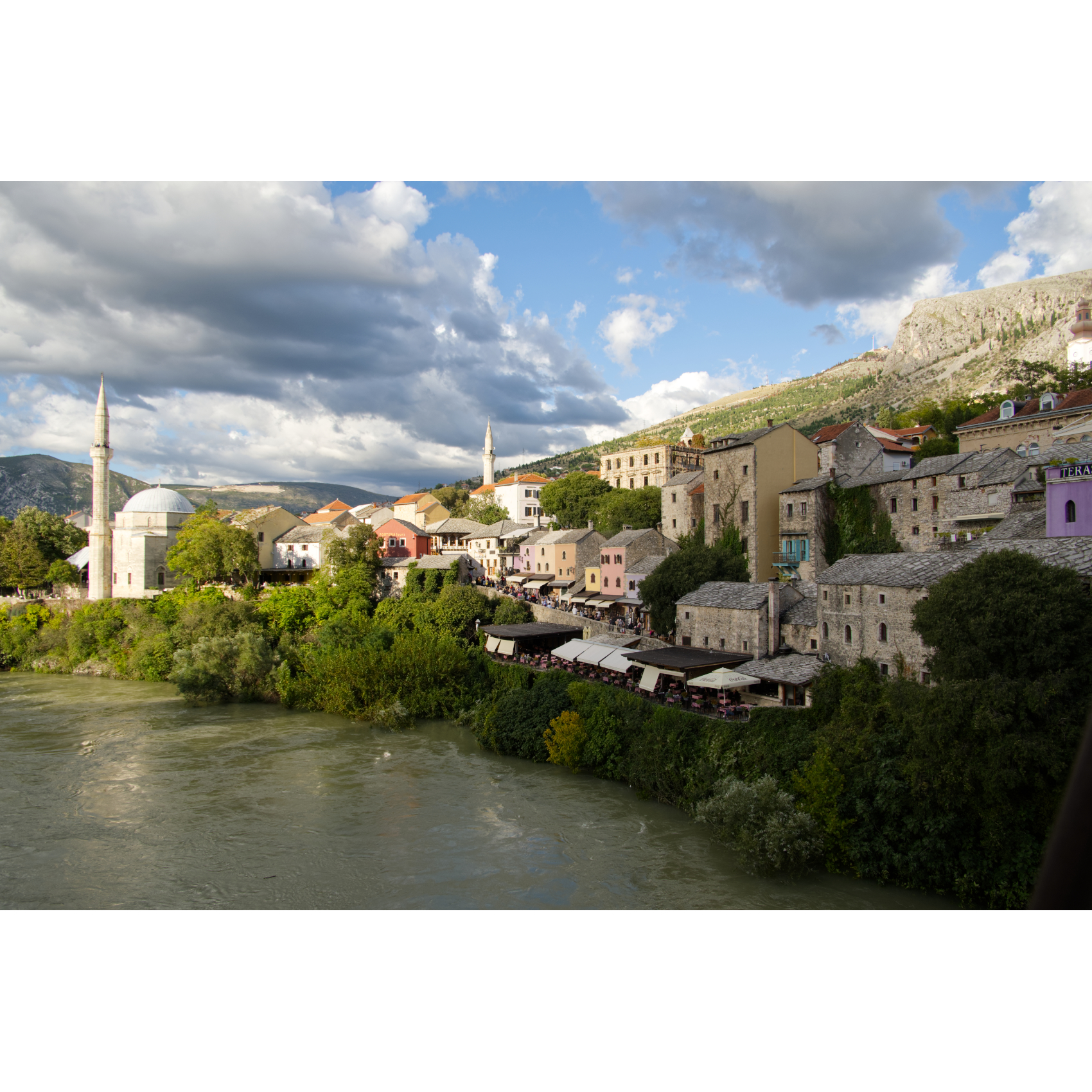 Wer kennt sie nicht, zumindest von Bildern, die alte Brücke von Mostar. Eigentlich ist sie ja eher neu. Nach der Zerstörung 1993 während des Bosnienkriegs wurde sie ab 1995 wieder aufgebaut und 2004 eingeweiht. Es wurden so viele alte Steine wie möglich aus dem Fluß geborgen und wieder verwendet. Die Umgebung ist natürlich sehr touristisch mit den unvermeidlichen Souvenierläden, vielen Restaurants und vor allem Eisständen, trotzdem stimmungsvoll. Auch 29 Jahre nach Ende des Bosnienkrieges sieht man immer noch viele zerschossene Ruinen. Wenn ich das Schild richtig interpretiere sollte das Wohnhaus bereits 1999 saniert werden ??? Dafür finden sich an anderen Häusern interessante Fassadenmalereien. Die kleine Brücke war der Prototyp für den Bau der großen Brücke.