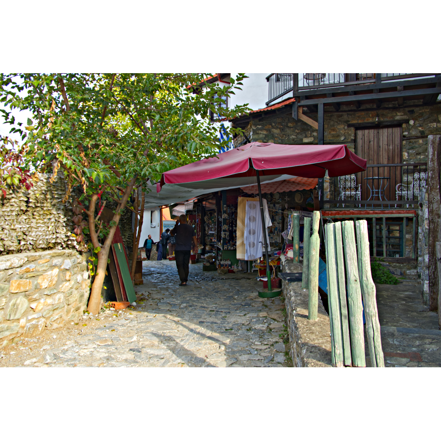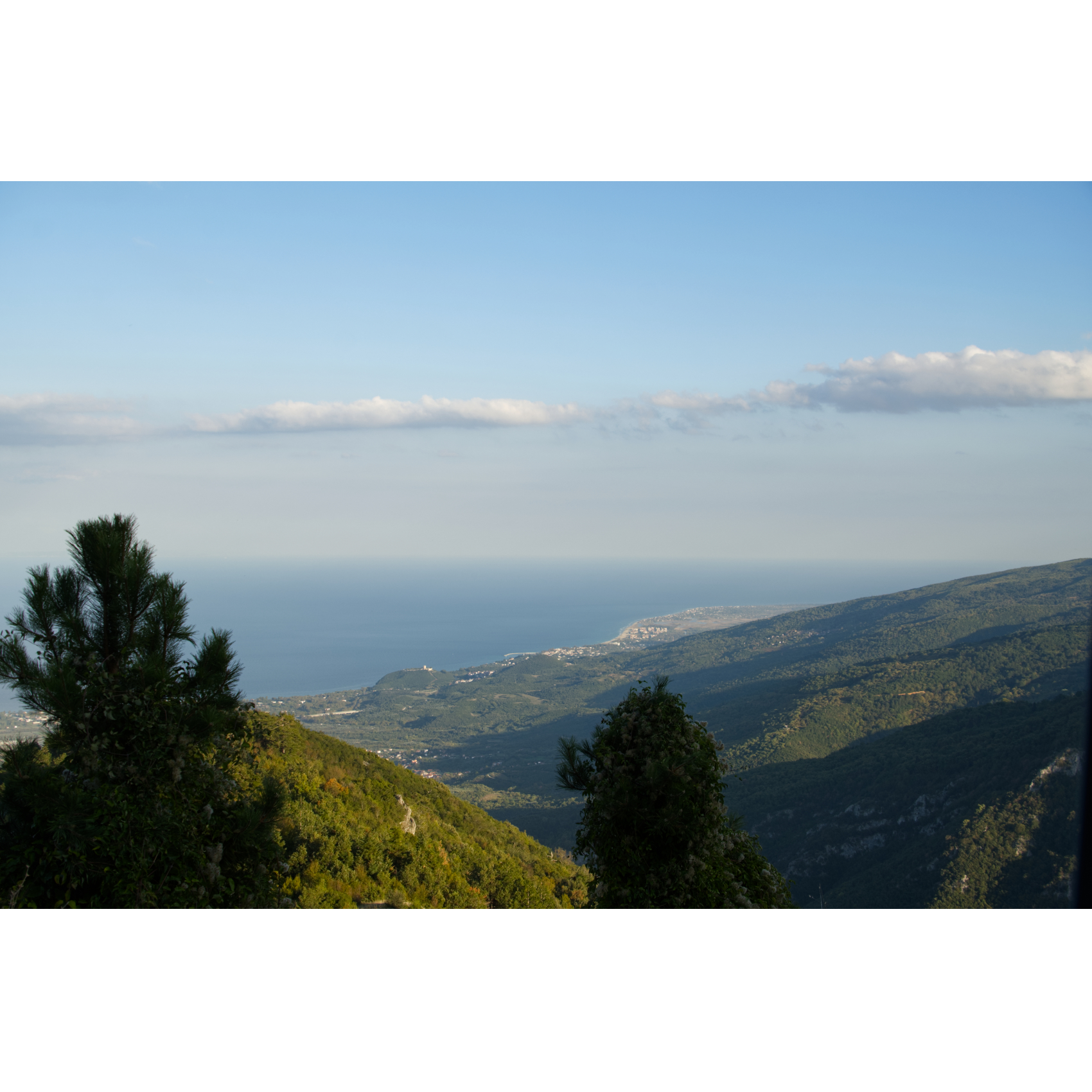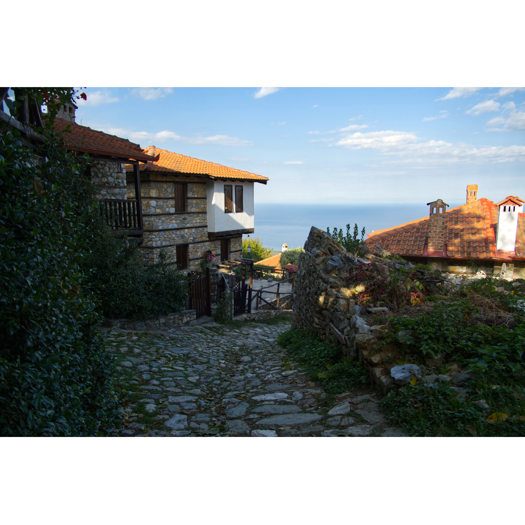 Von irgendwo muss dieser Olymp doch richtig zu sehen sein, von Prionia aus jedenfalls nicht, nicht ohne Bergsteigen. Vielleicht wenn wir einmal drumherum fahren? Also die Leptokarya Serpentine Road unter die Räder genommen. Am Livethra Magnetic Field trafen wir auf Nick und Christos, die gerade ausprobiert hatten, ob ein Auto hier tatsächlich im Leerlauf bergauf fährt. Die einen sagen hier gäbe es ein Magnetfeld, das quasi die Schwerkraft aushebelt, die anderen sagen, das ist Quatsch, an der Stelle täuscht der Straßenbelag und es ist tatsächlich etwas abschüssig. Wir haben es auch ausprobiert, selbst unser schwerer Sprinter ließ sich mühelos bergauf bugsieren, warum auch immer … Die beiden jungen Griechen luden uns noch zu einem Konzert ein, das schon in einer halben Stunde in Panteleimonas beginnen sollte. Eine bekannte Band mit Musik aus Griechenland und dem Balkan, ohne Eintritt, klang verlockend, spontan sagten wir zu. Und es hat sich gelohnt, es war hervorragend! Ein kurzer Gang durch das Bergdorf, das nach einem Erdbeben Ende des 19. Jh. zerstört wurde, seit ein paar Jahren wieder original restauriert wird und zum Touristenmagnet avanciert. Dann zurück zur „magnetischen“ Straße, die Serpentinen hinauf zu unserem Schlafplatz - mit Meerblick!