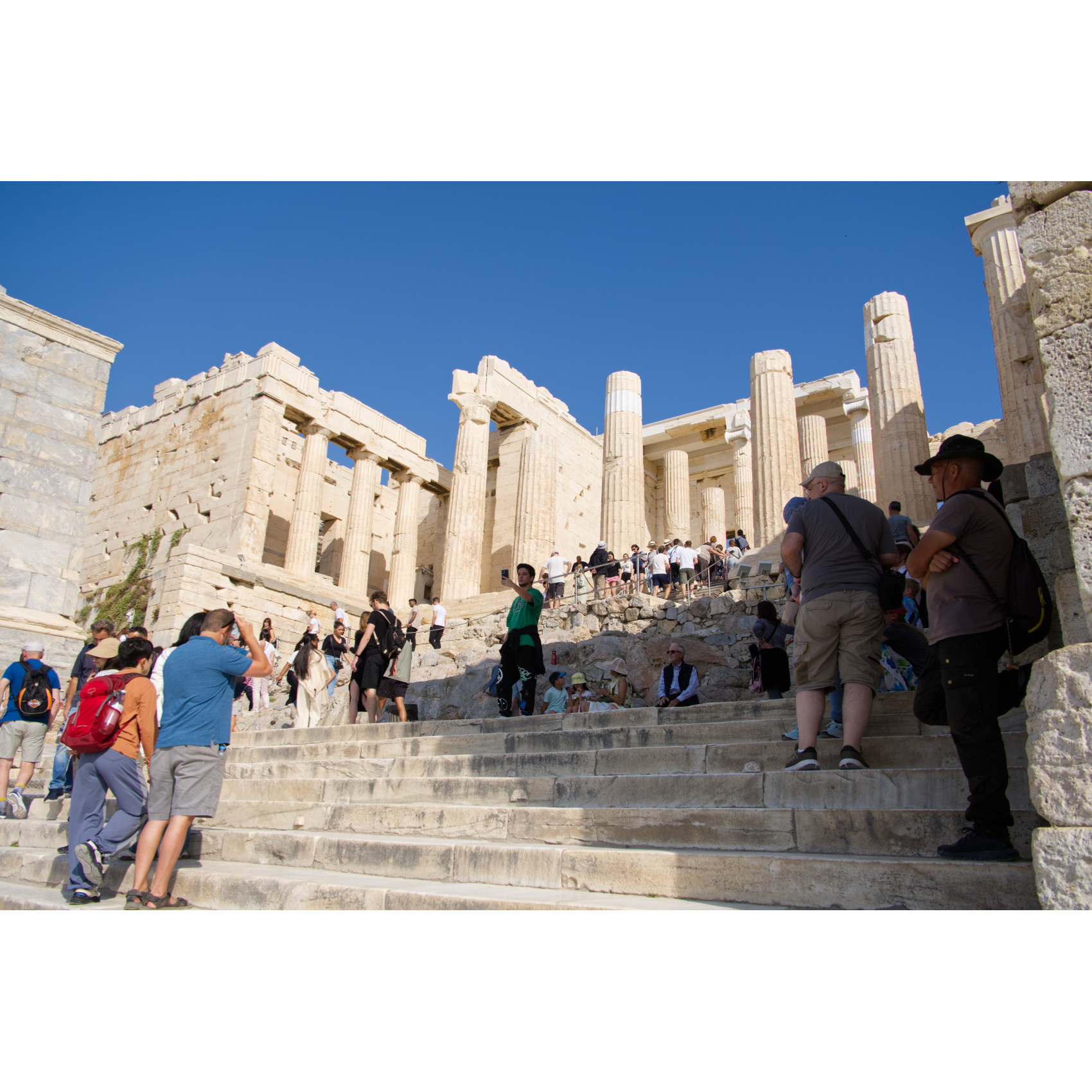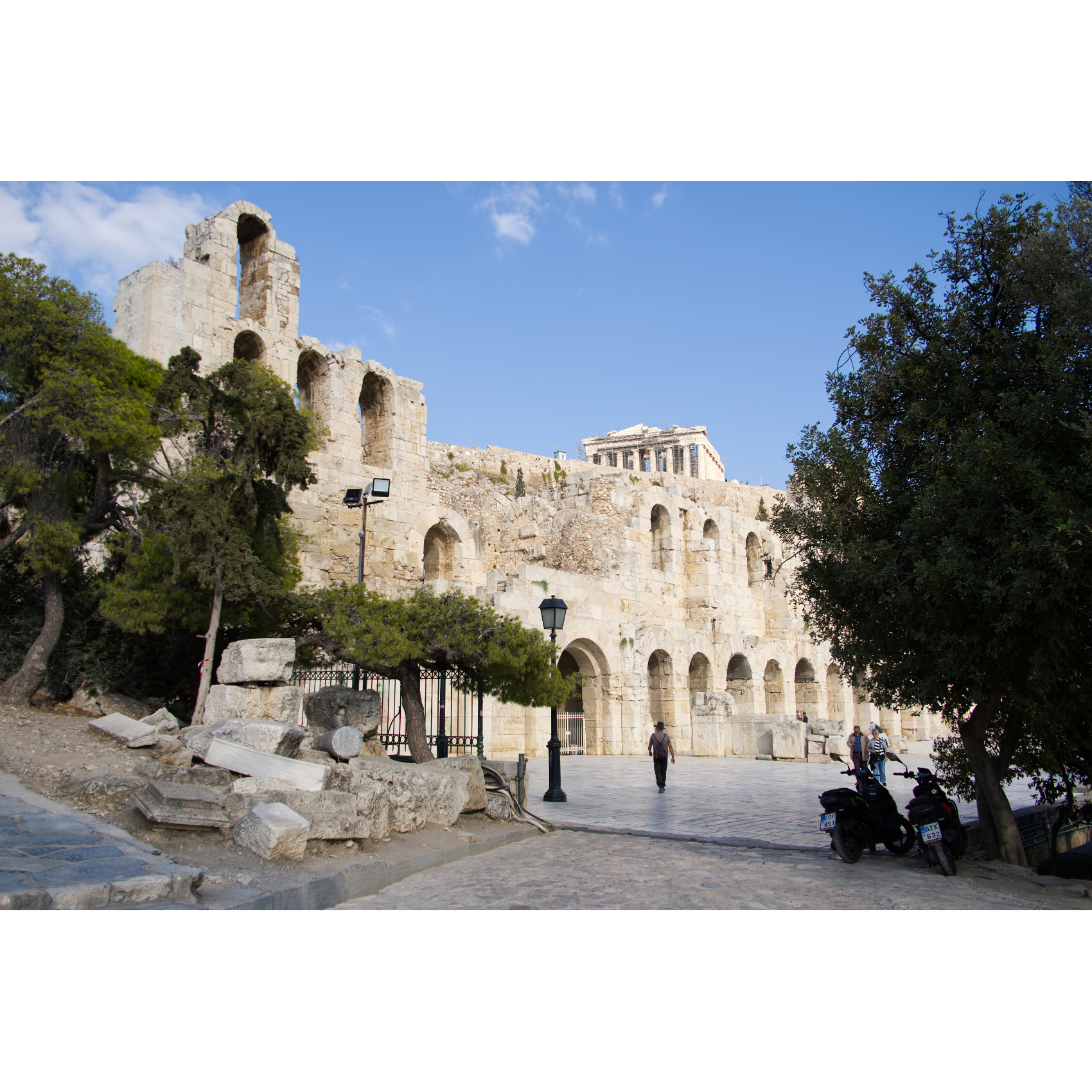 Strahlend blauer Himmel, ein paar Deko-Wölkchen und angenehm warme Temperaturen - ideal um Athen und die Akropolis zu besuchen. Den Südhang hinauf wechseln sich schön renovierte und ehemals schöne Häuser ab. Die Akropolis ist ein großes Areal mit vielen Bauwerken, z.B.: Odeon des Herodes Atticus - Die Propyläen, das Tor zur Akropolis - Parthenon, Tempel der Athene - Erechtheion, ebenfalls der Stadtgöttin Athene geweihter Tempel - Odeon des Herodes Atticus, von unten. Alles sehr beeindruckend! Wieder unten in der Stadt: Akropolismuseum - ein ganzer Schwarm Mönchssittiche im Park - die Tauben auf dem großen Platz sammeln sich und marschieren alle in eine Richtung, ohne erkennbaren Grund. Dann geht es nicht weiter und sie schauen sich etwas irritiert um - Monastiraki, lebhaftes Viertel mit Einkaufsstraßen, Restaurants und Tavernen - Auf den Lykabettus, einen Kalksteingipfel mit Panoramablick gestiegen, leider zu spät für den Sonnenuntergang - Die vielen Stufen und steilen Wege wieder hinunter. Dann völlig erschöpft aber zufrieden zurück zum Stellplatz. Die Innenstadt lässt sich mit der Metro gut erkunden. Es gibt 3 Linien, rot, blau und grün. Das Tagesticket kostet € 4,10! Für alle öffentlichen Verkehrsmittel außer der Strecke zum Flughafen.